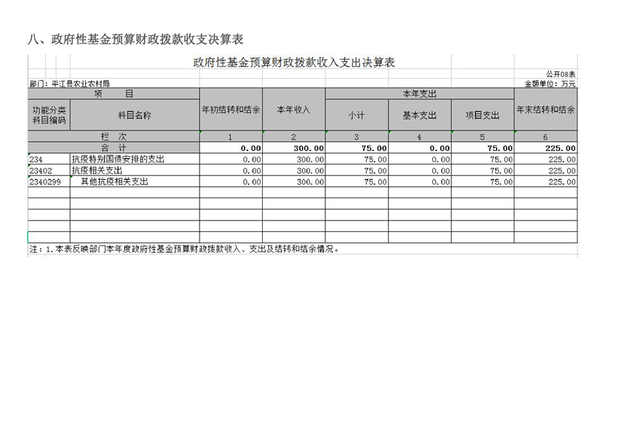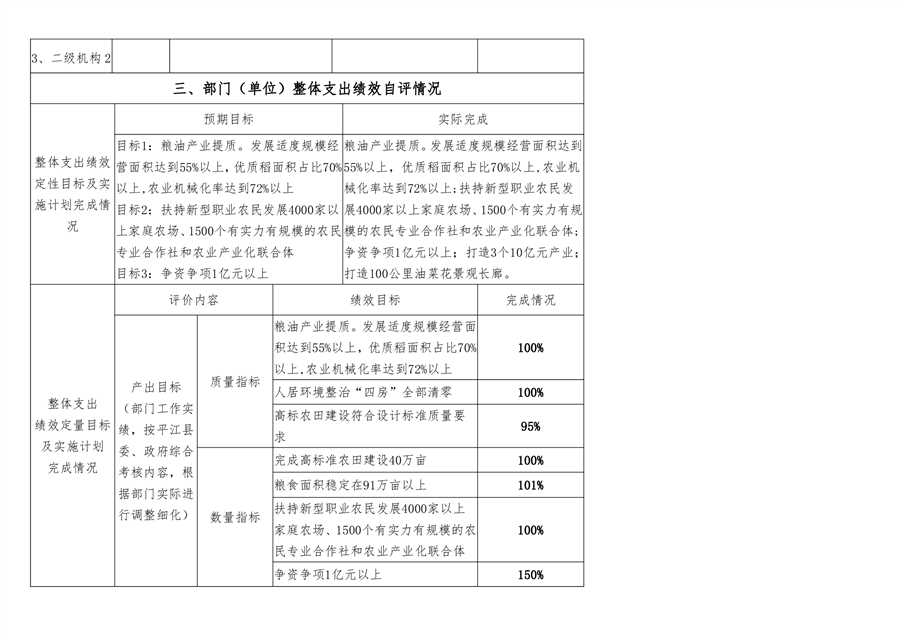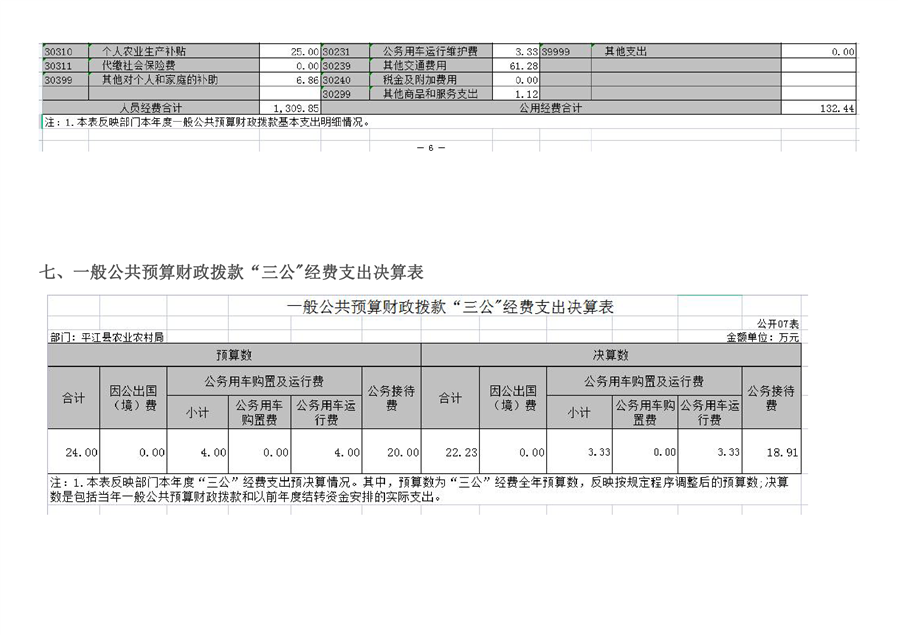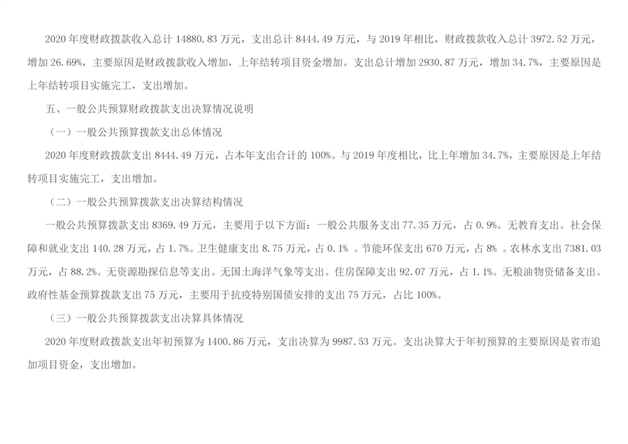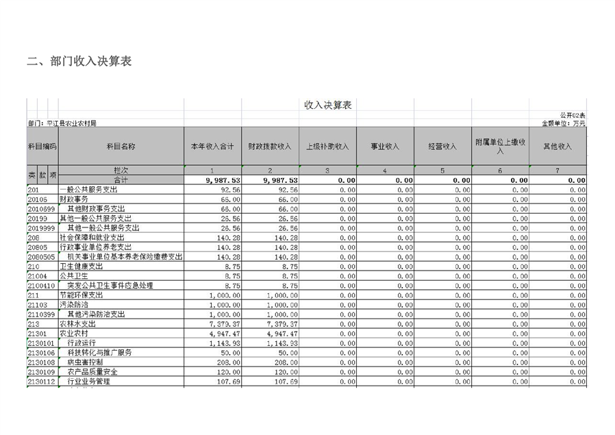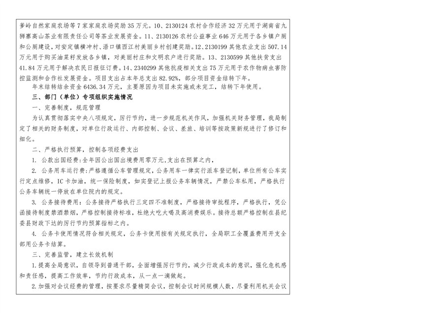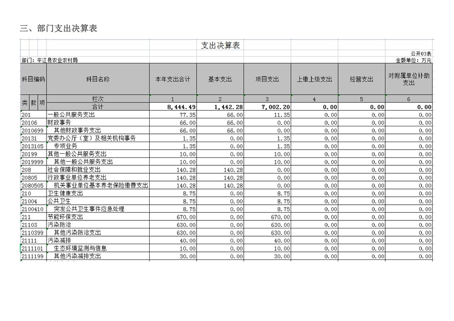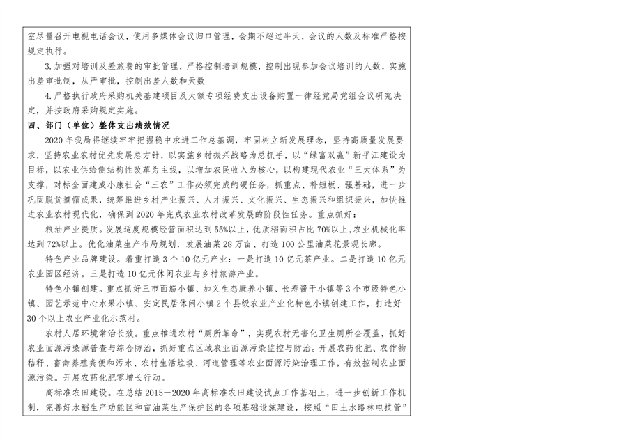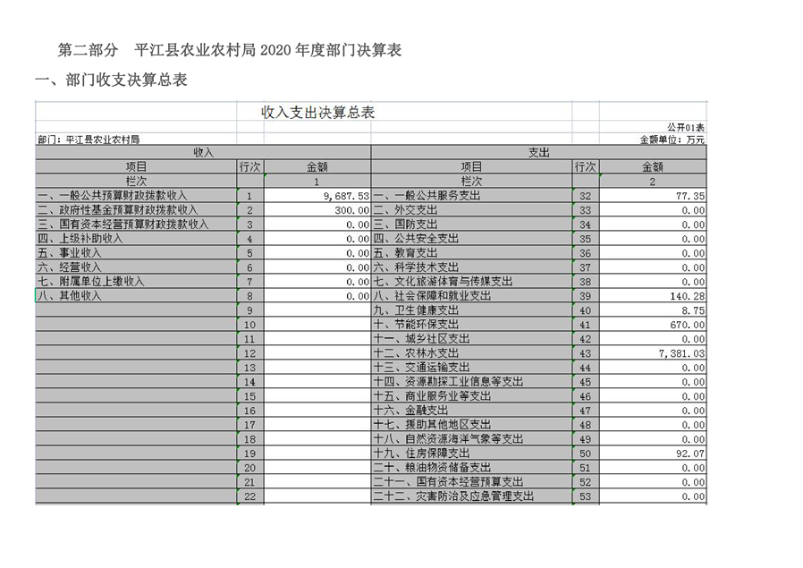 平江县农业农村局2020年部门决算编报说明