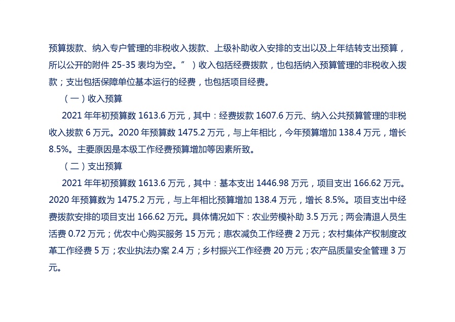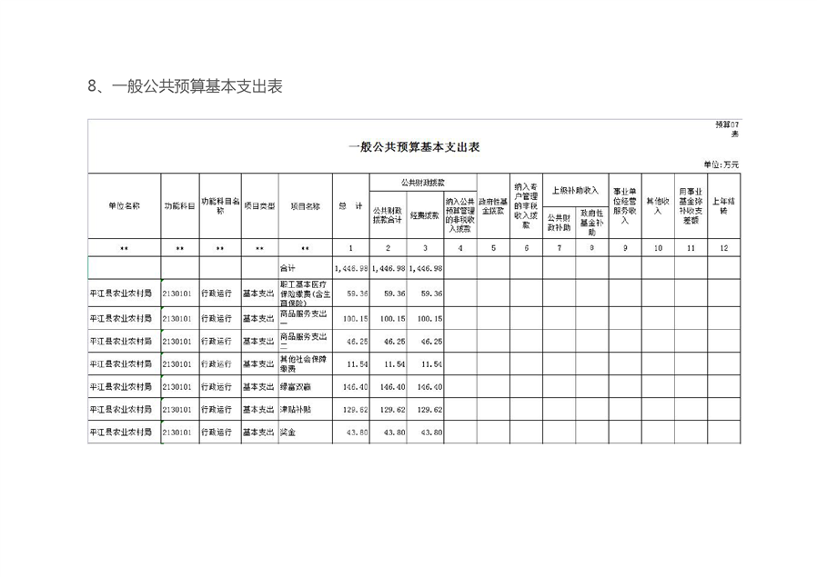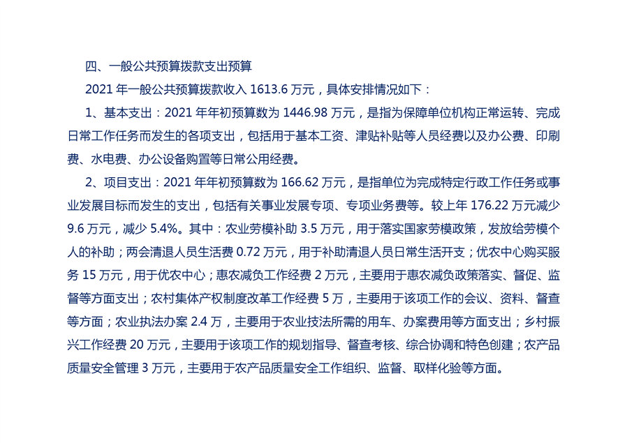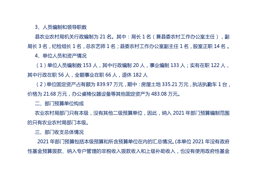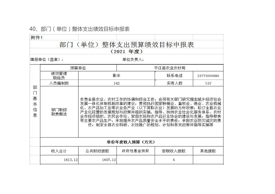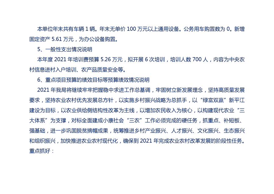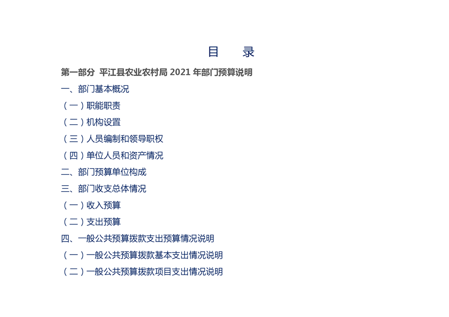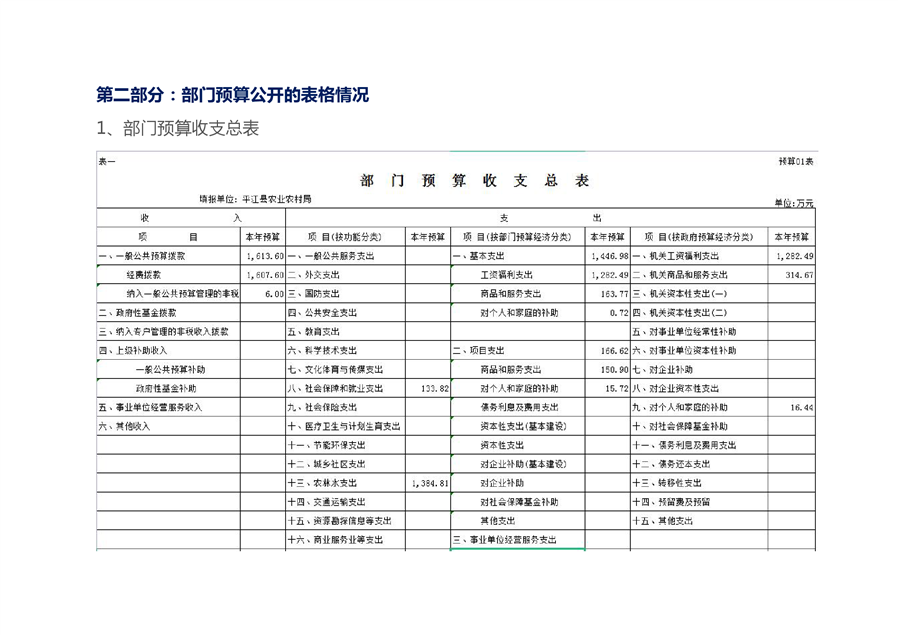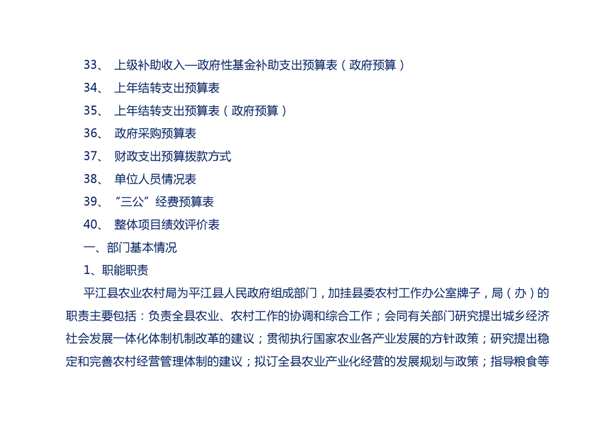 平江县农业农村局2021部门预算编报说明
