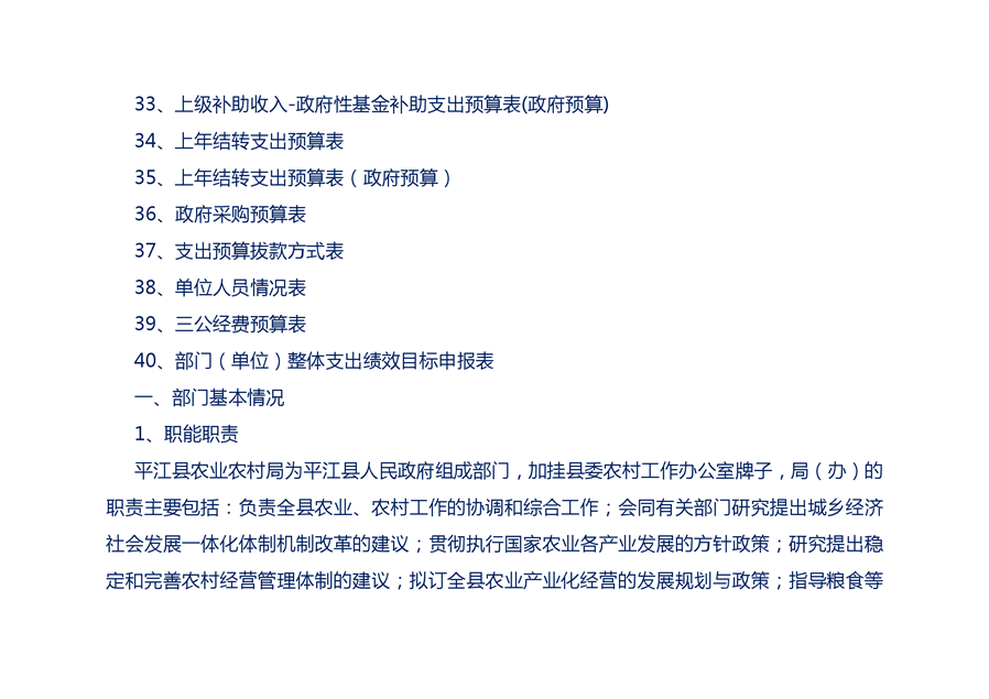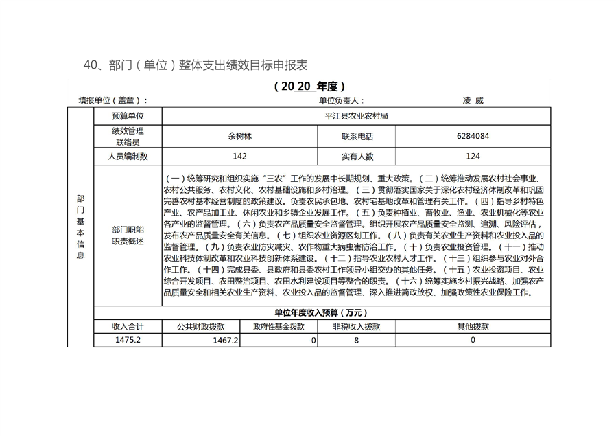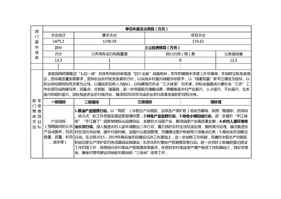 平江县农业农村局2020年部门预算编报说明