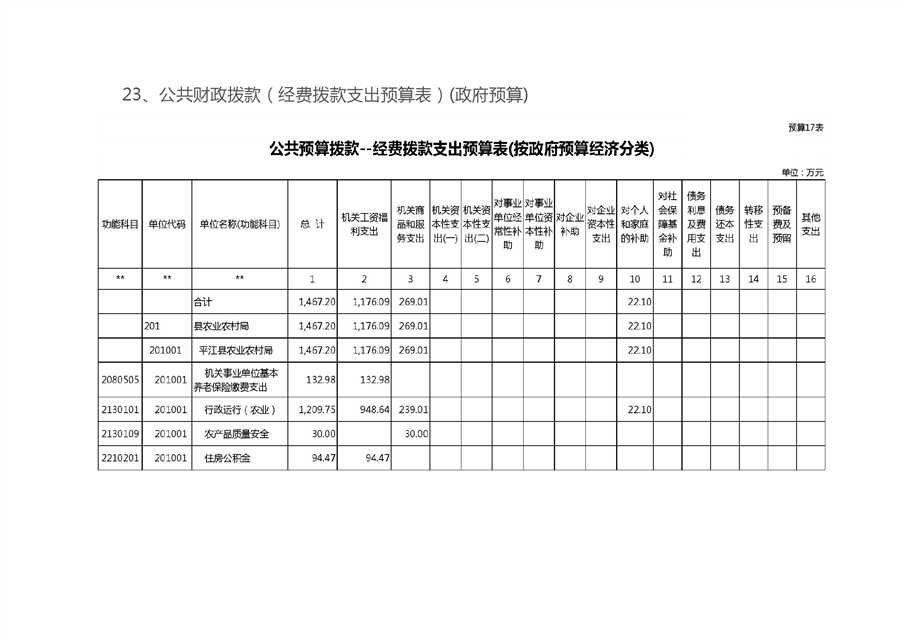 | 公开依据 | 《预算法》、《政府信息公开条例》、《财政部关于印发<地方预决算公开操作规程的通知>》等法律法规和文件规定 | ||