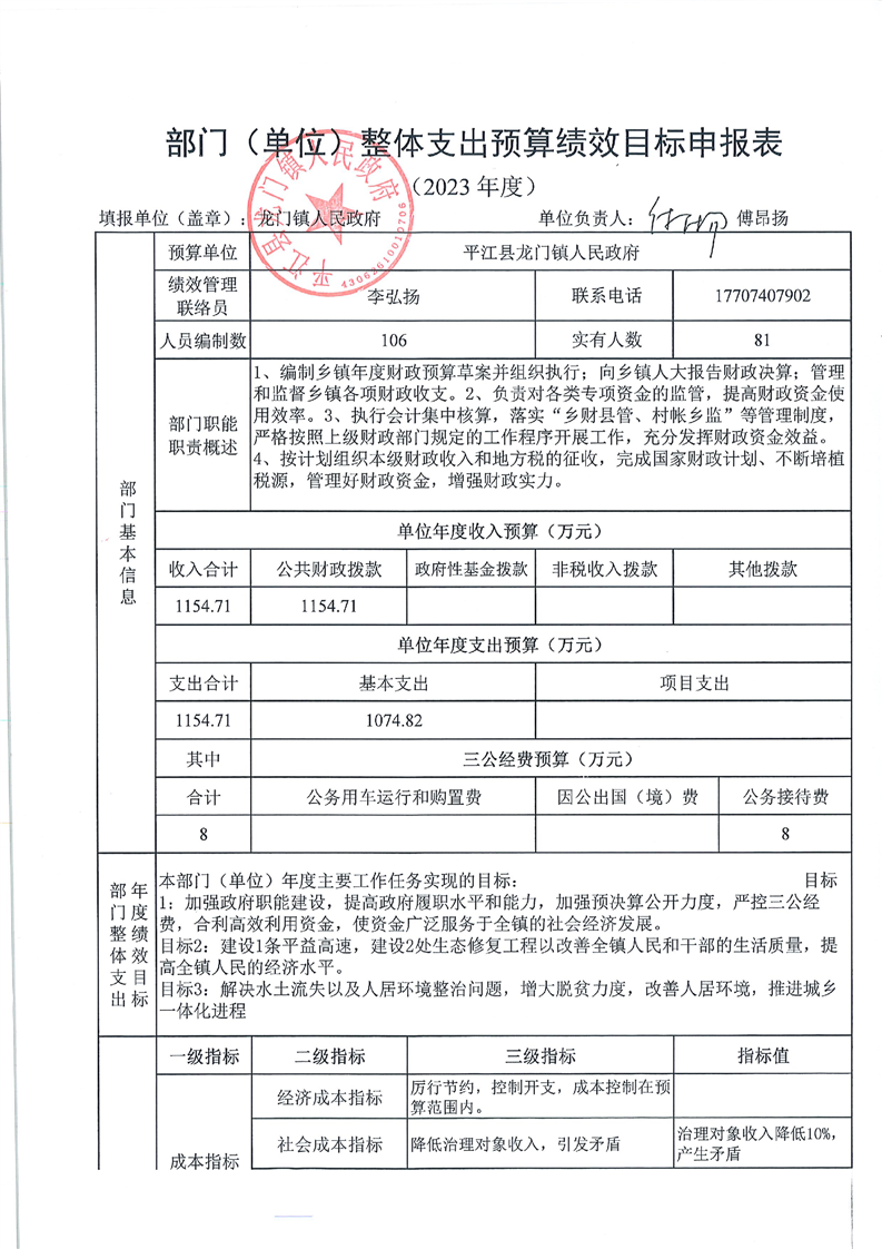 龙门镇人民政府2023年度部门预算公示