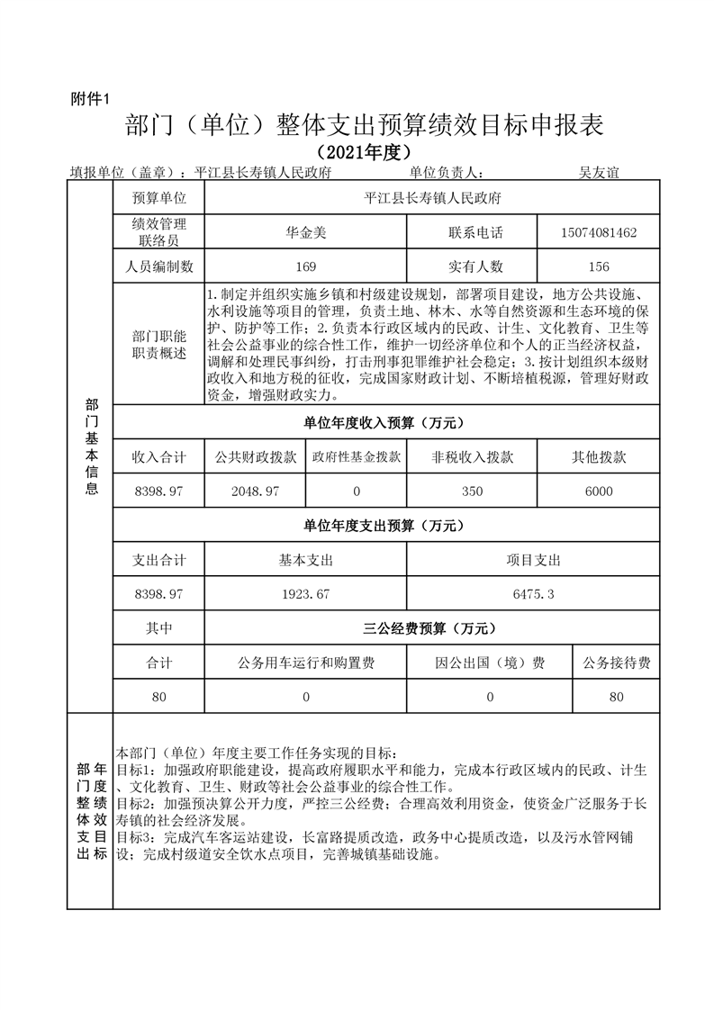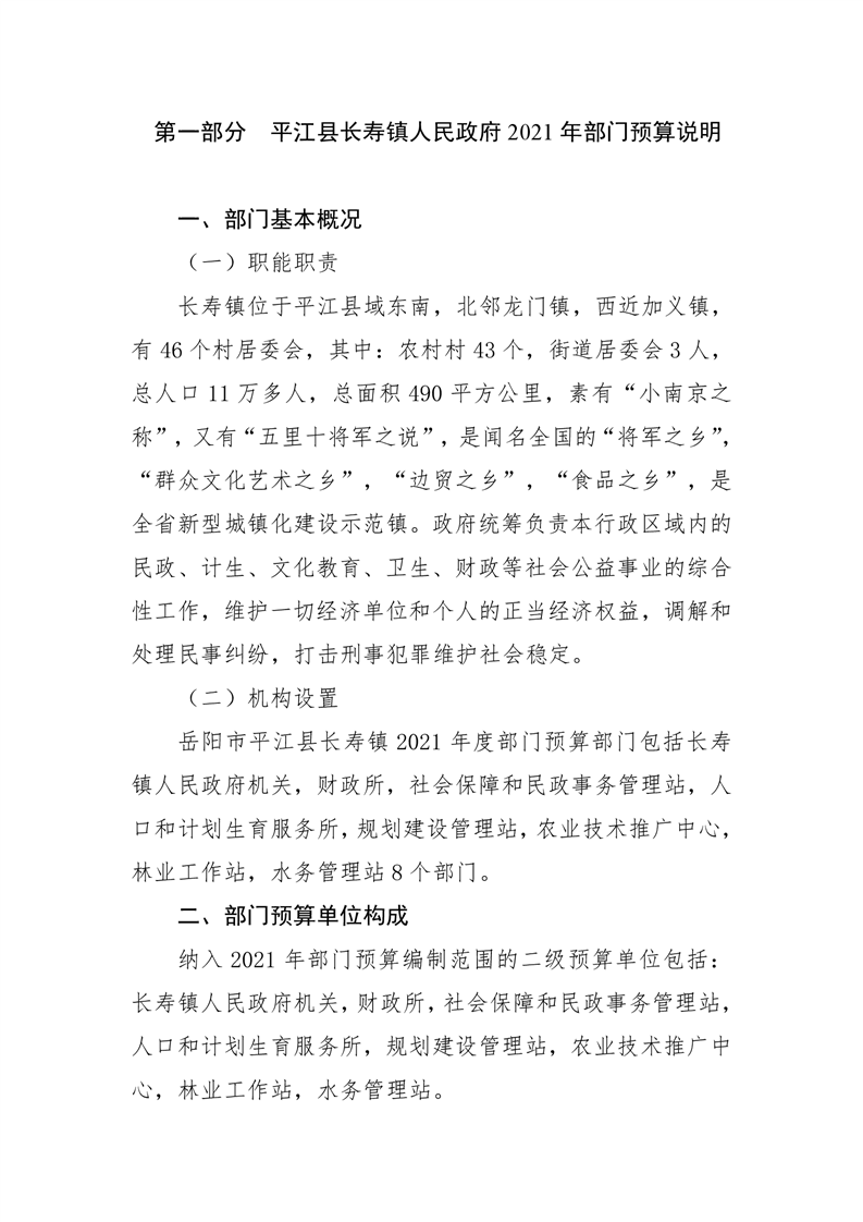 平江县长寿镇2021年部门预算编报说明