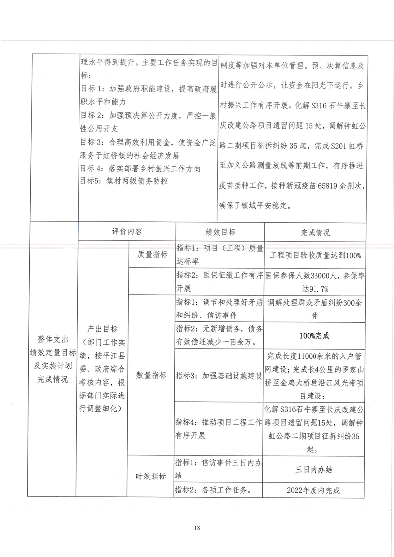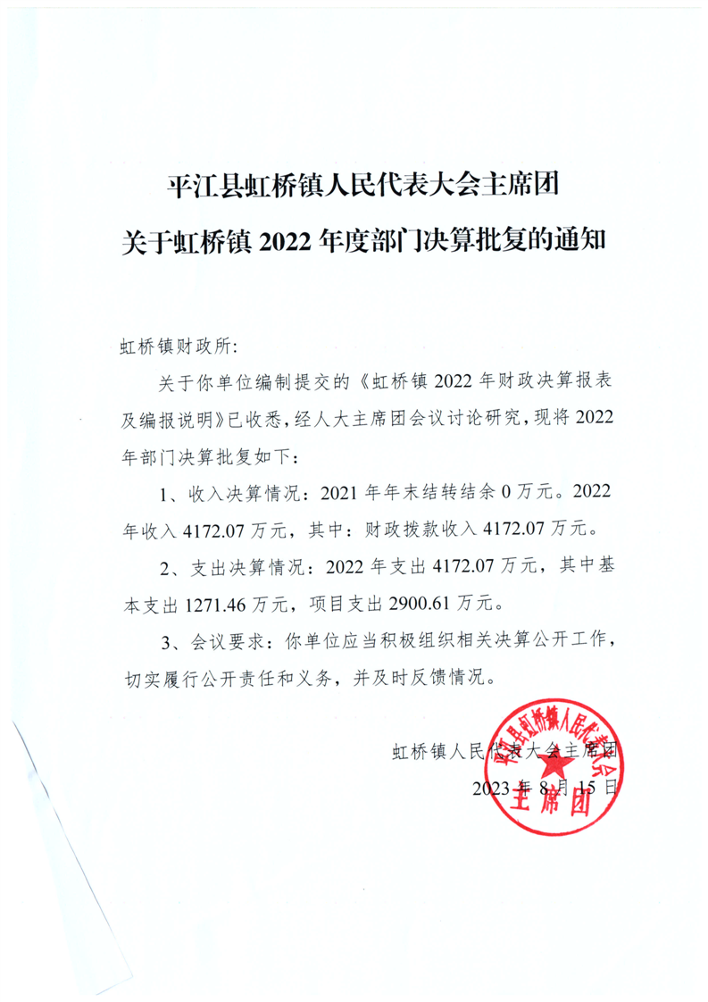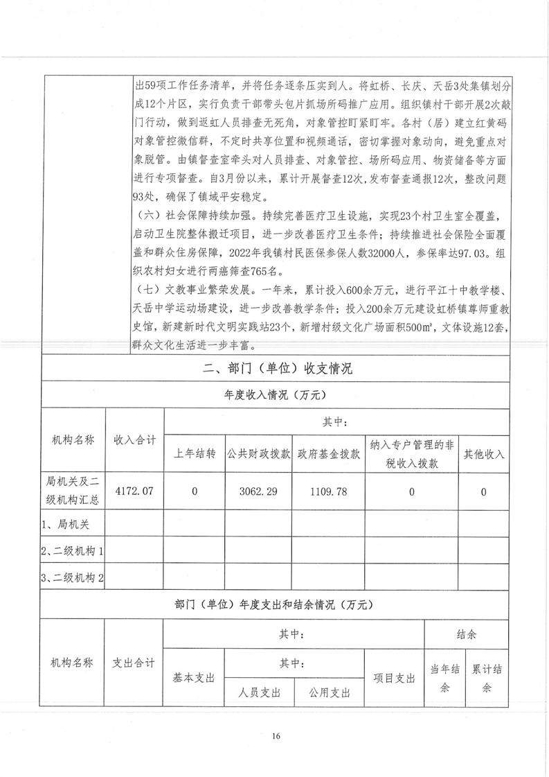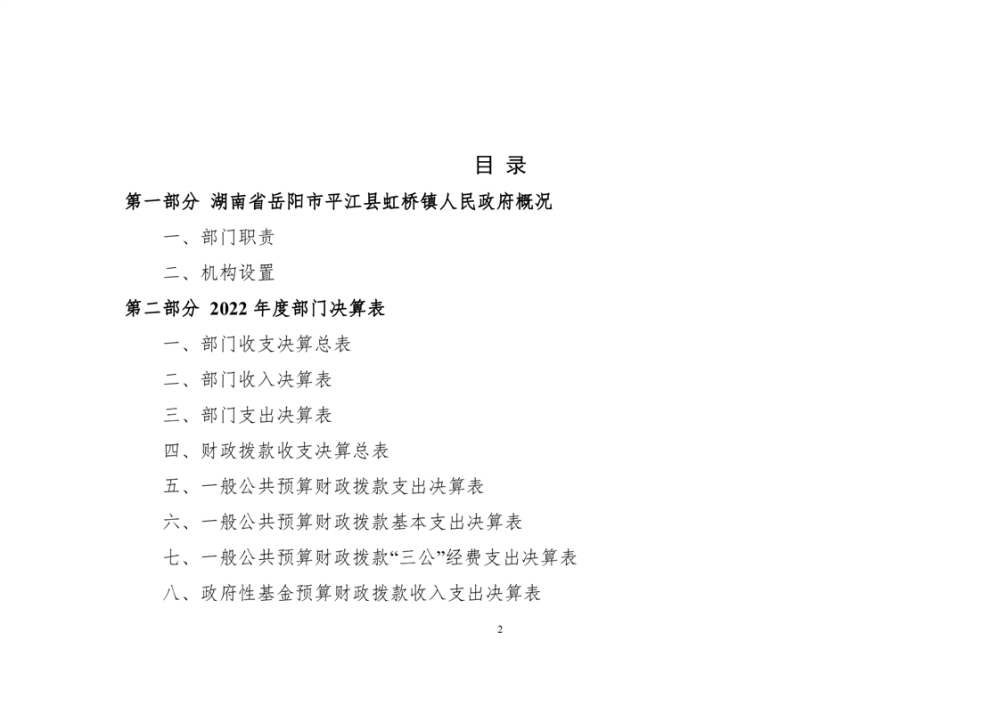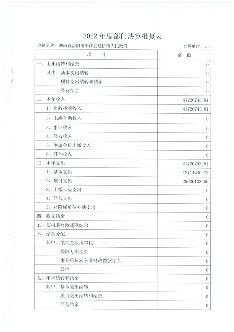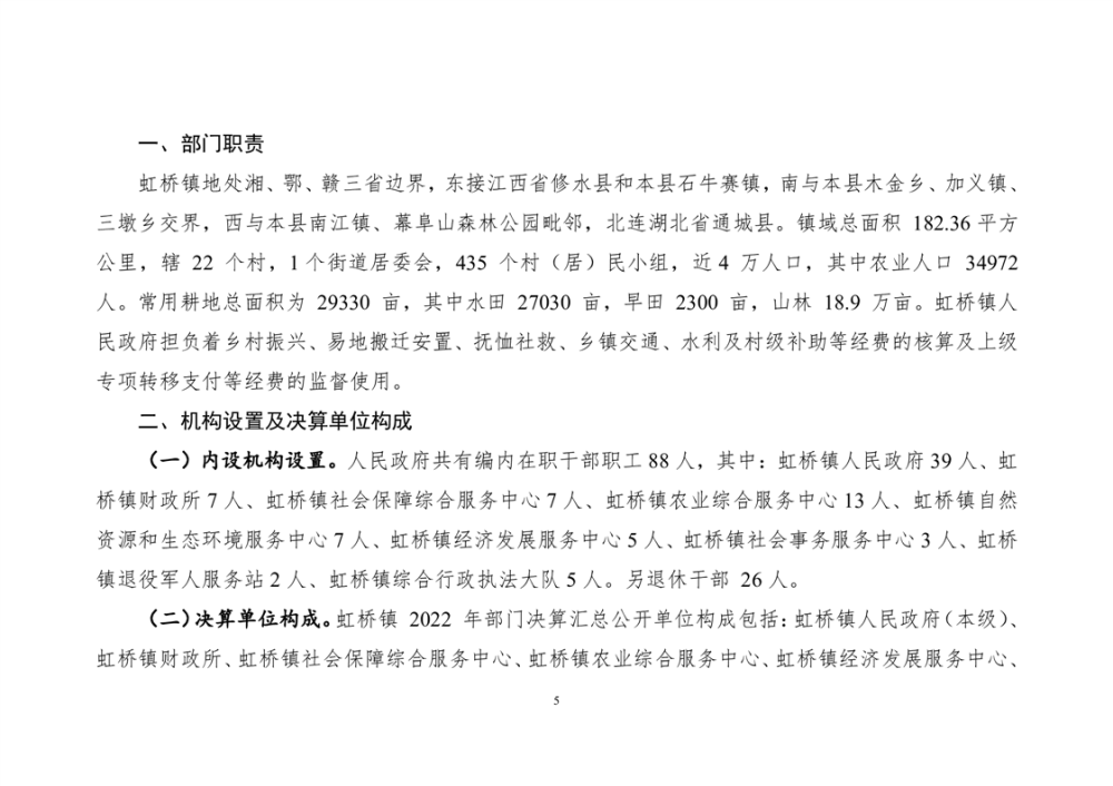 平江县虹桥镇2022年度决算公开说明