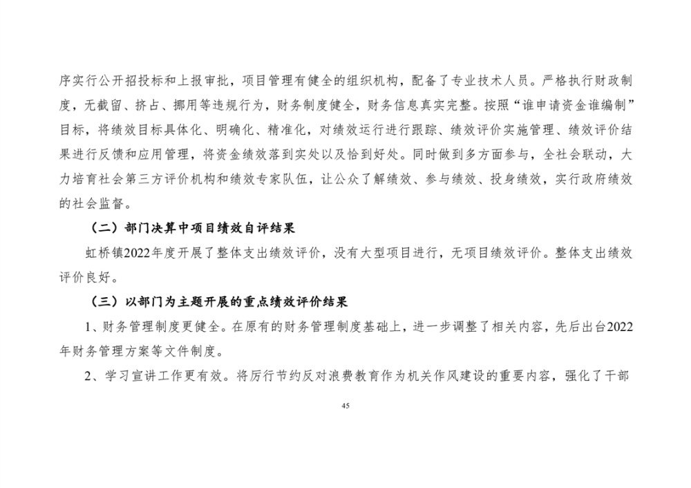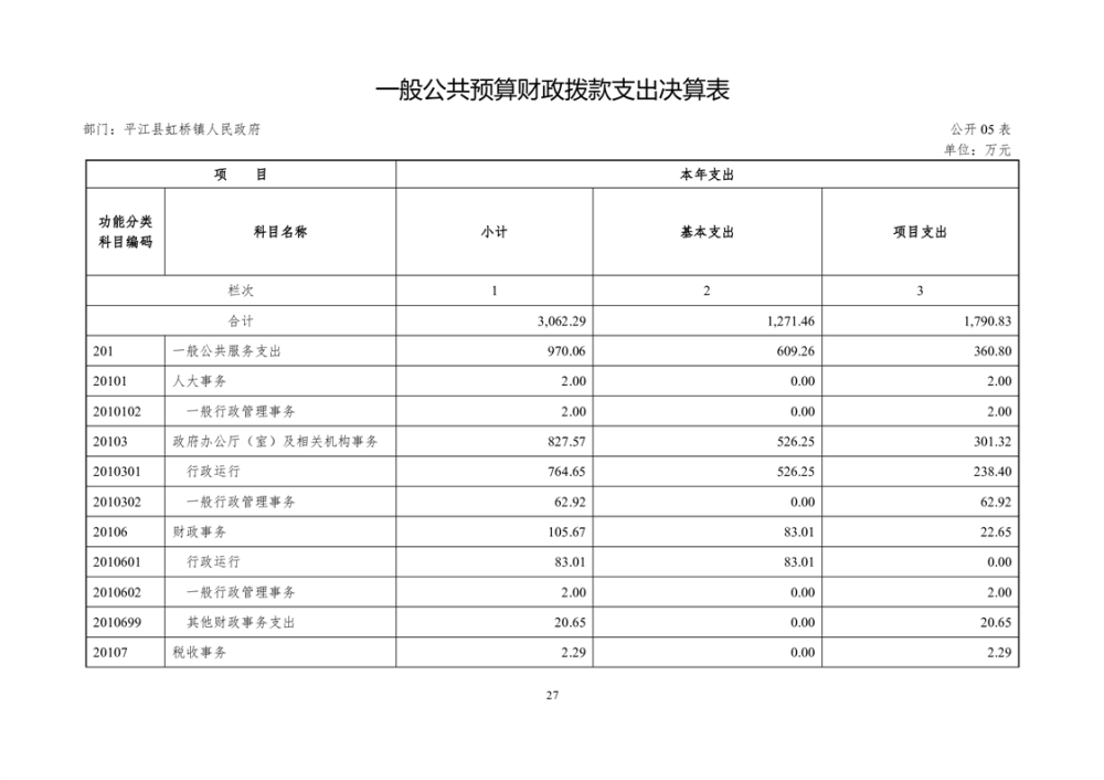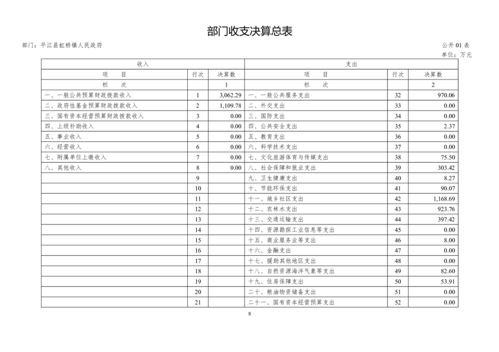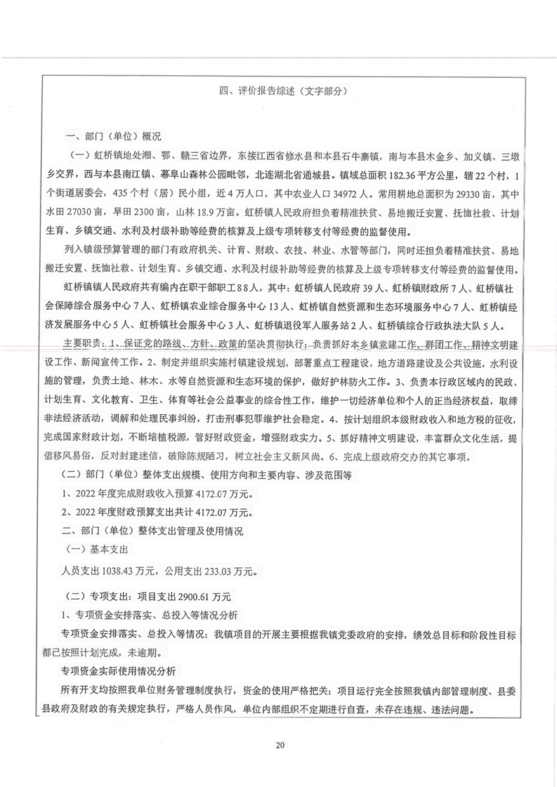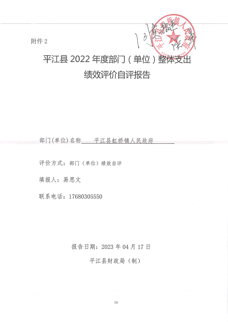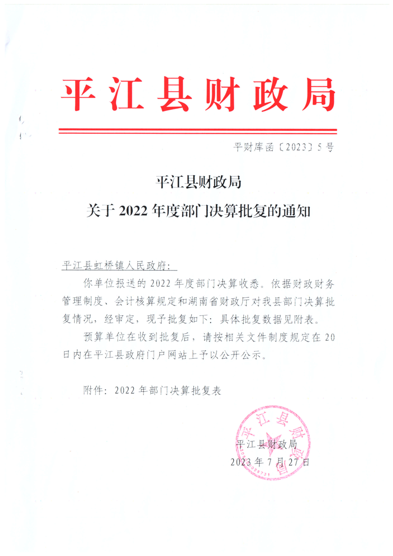 平江县虹桥镇2022年度决算公开说明