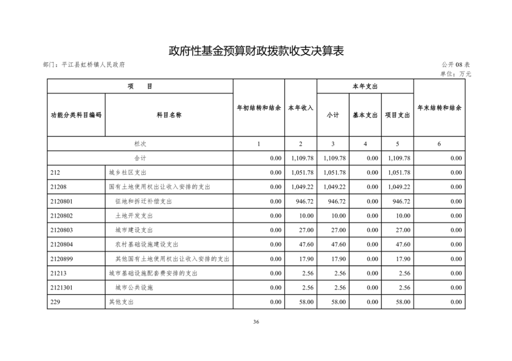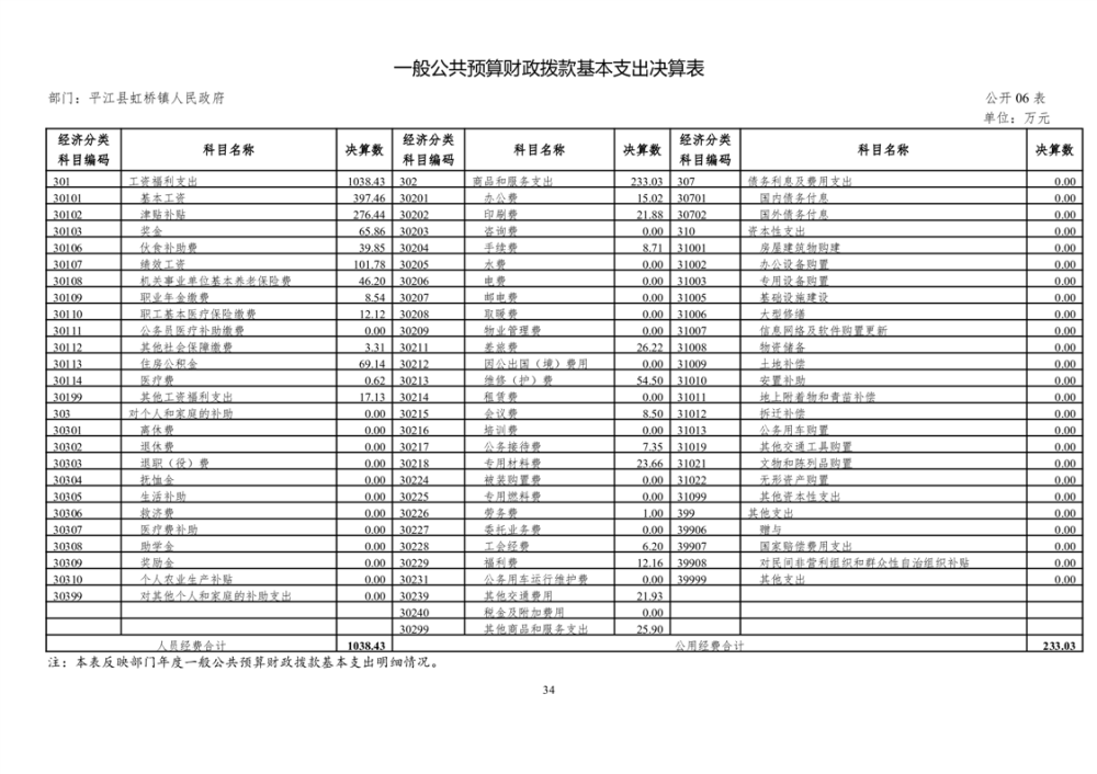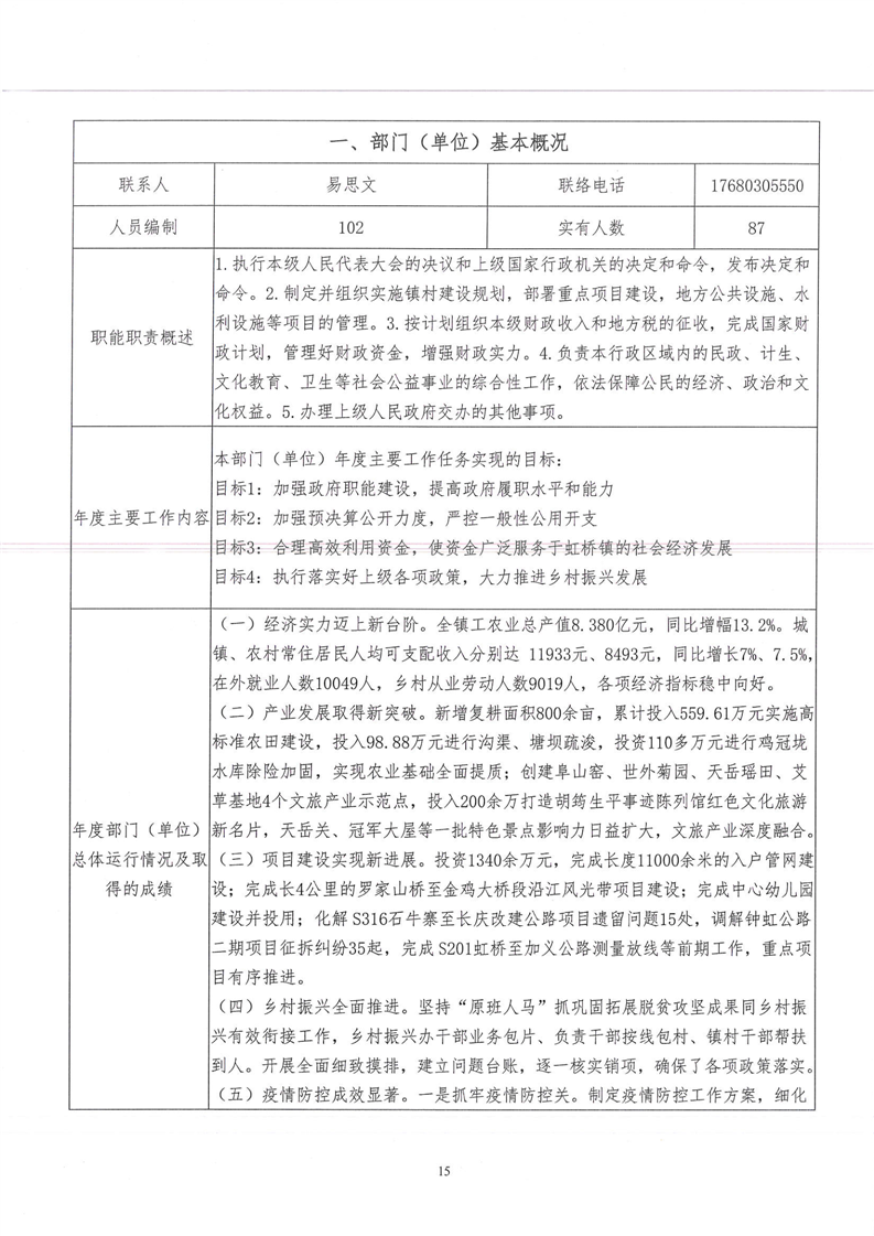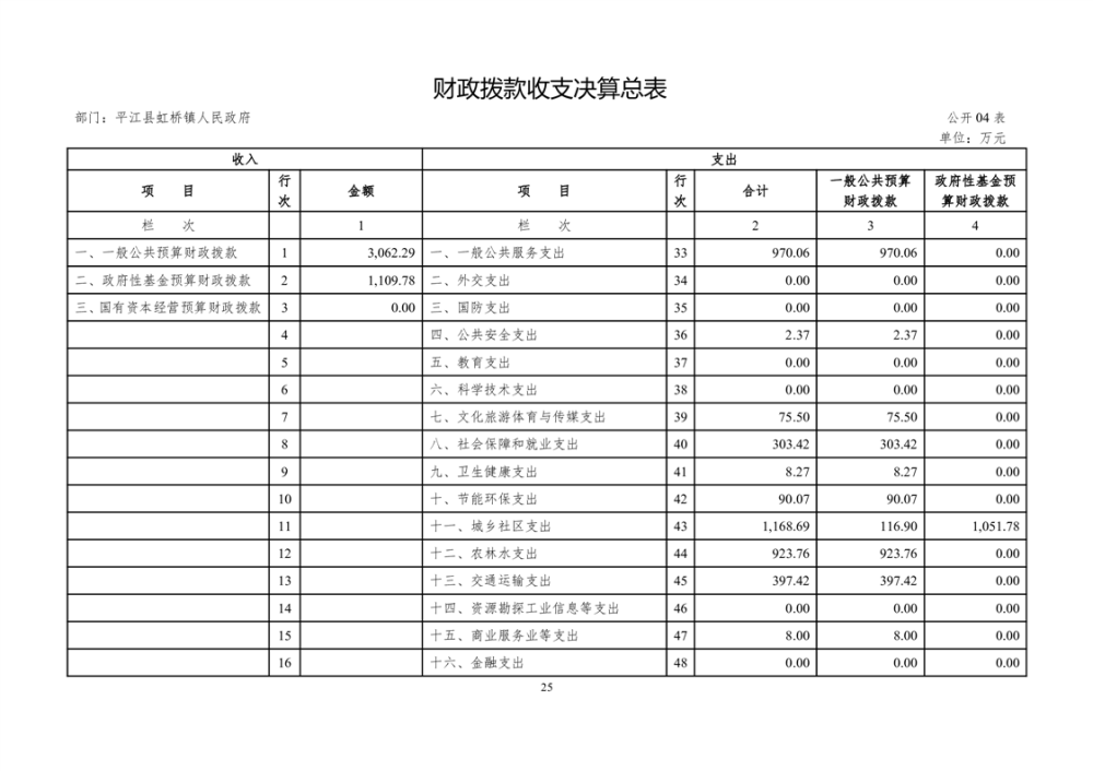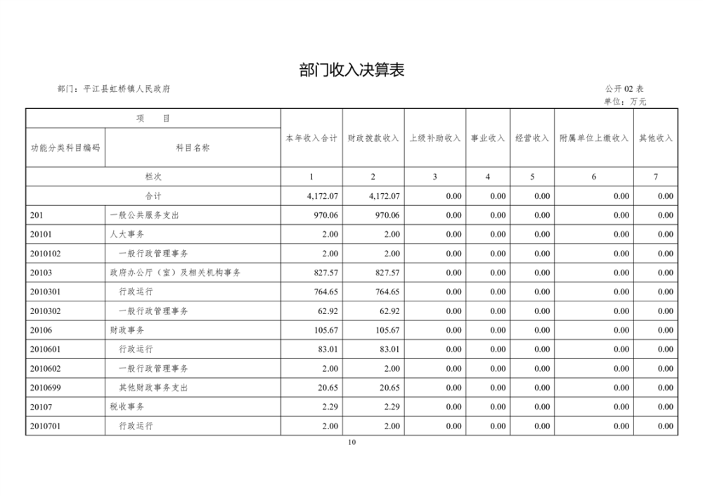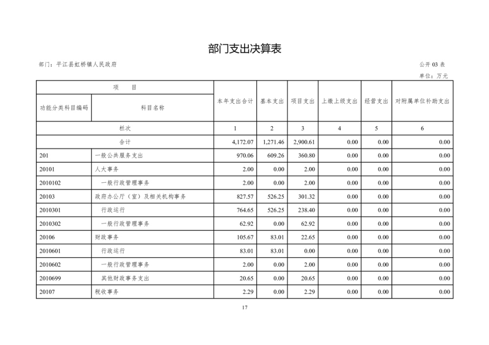平江县虹桥镇2022年度决算公开说明