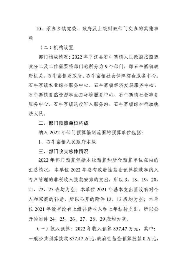 平江县石牛寨镇2022年部门预算公开说明
