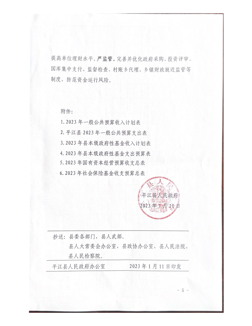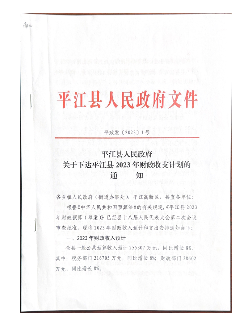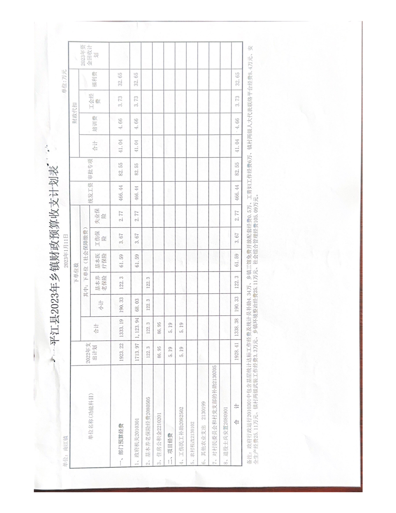 平江县南江镇2023年乡镇收支计划表