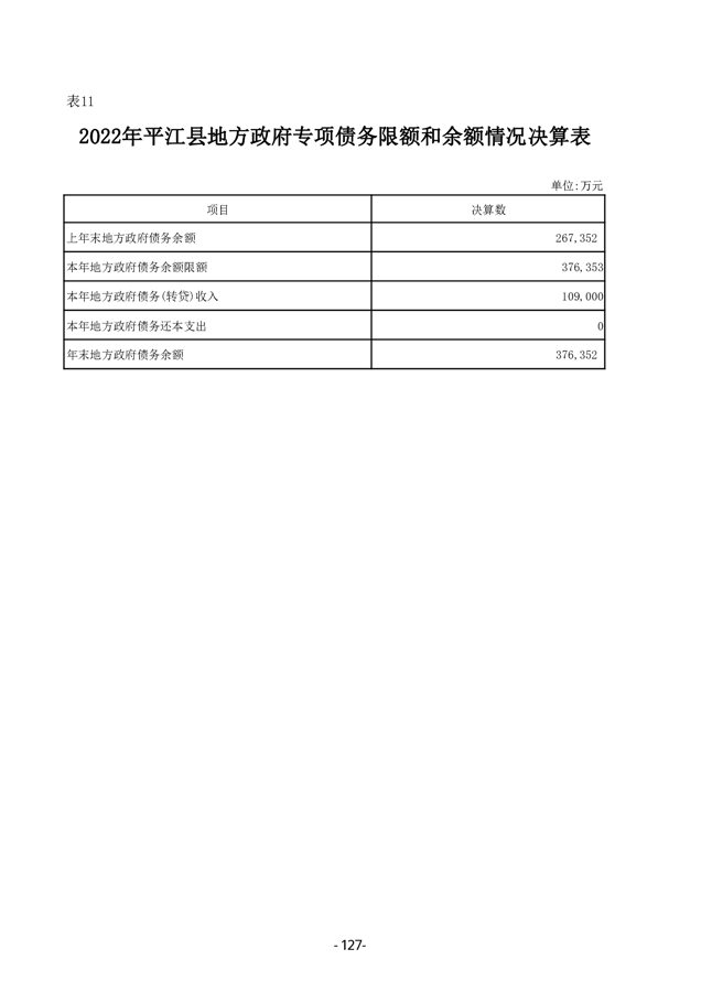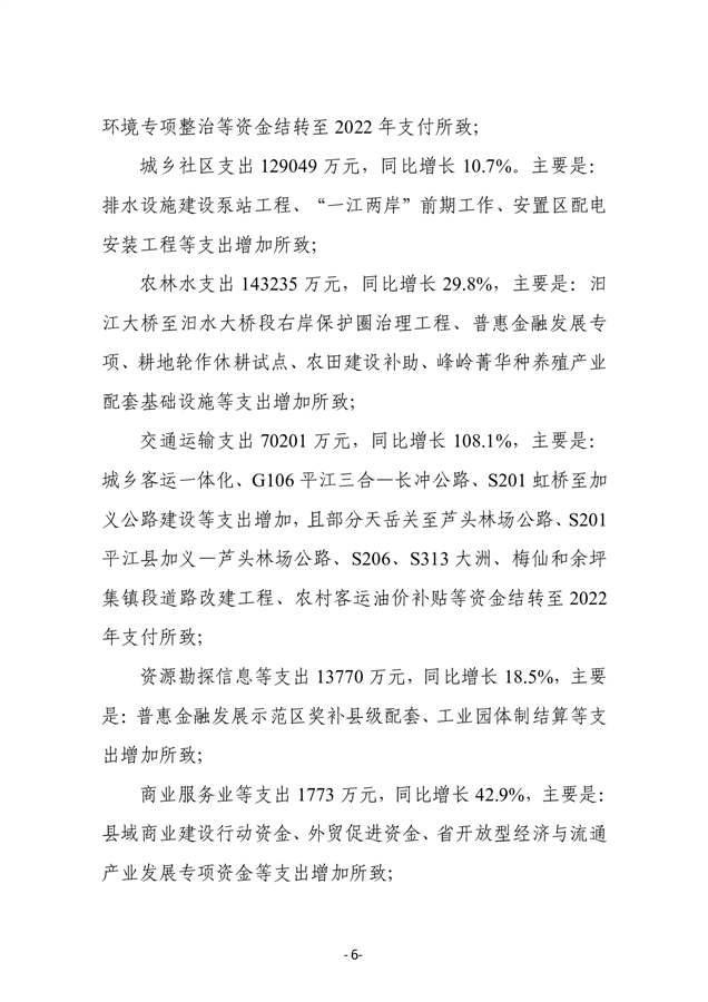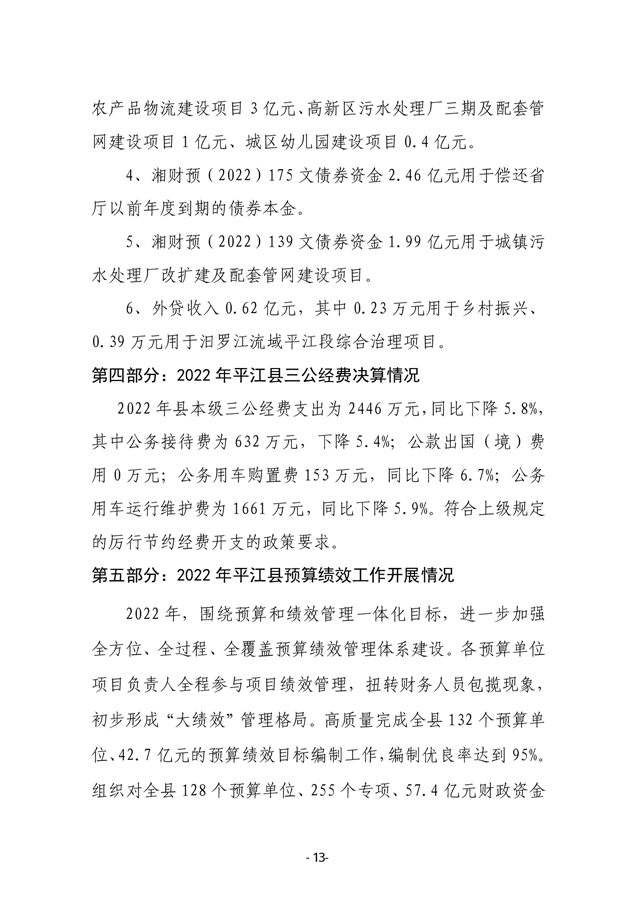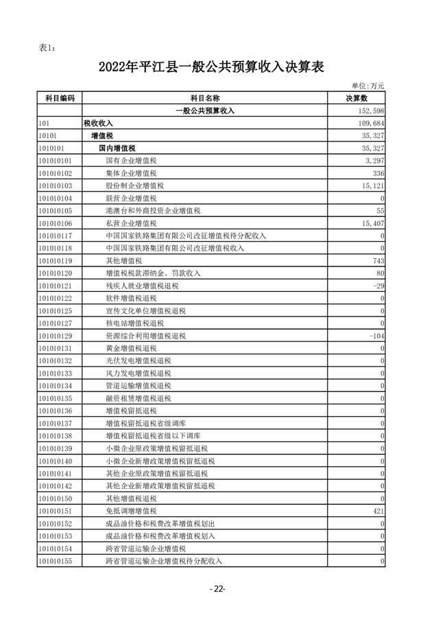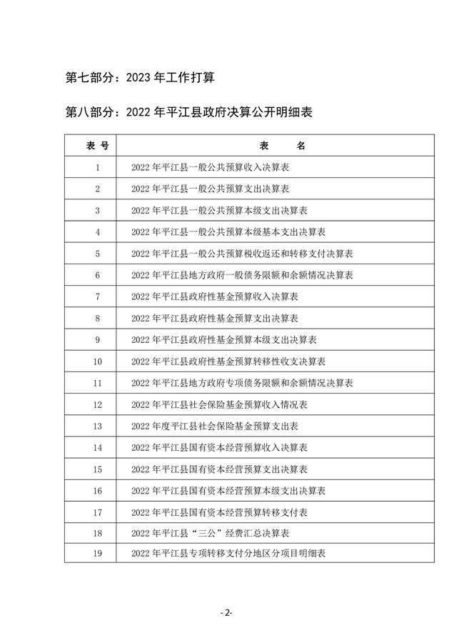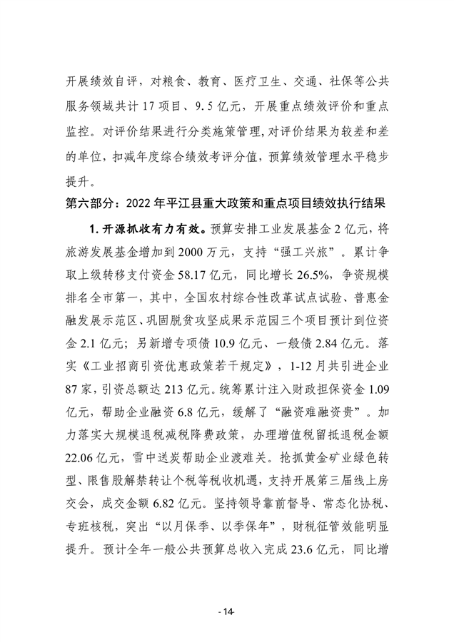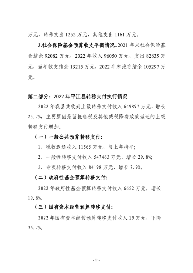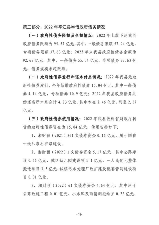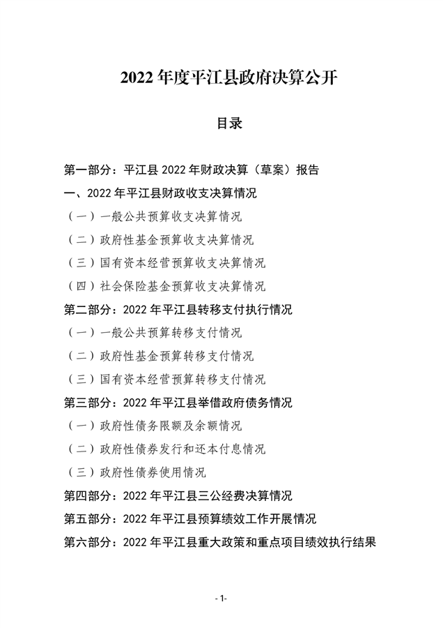 2022年度平江县政府决算公开