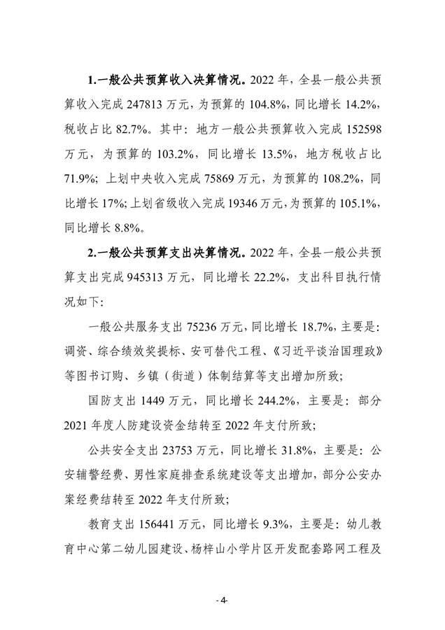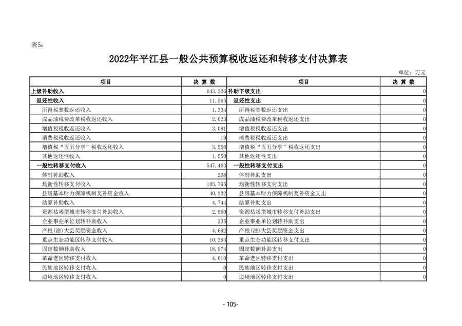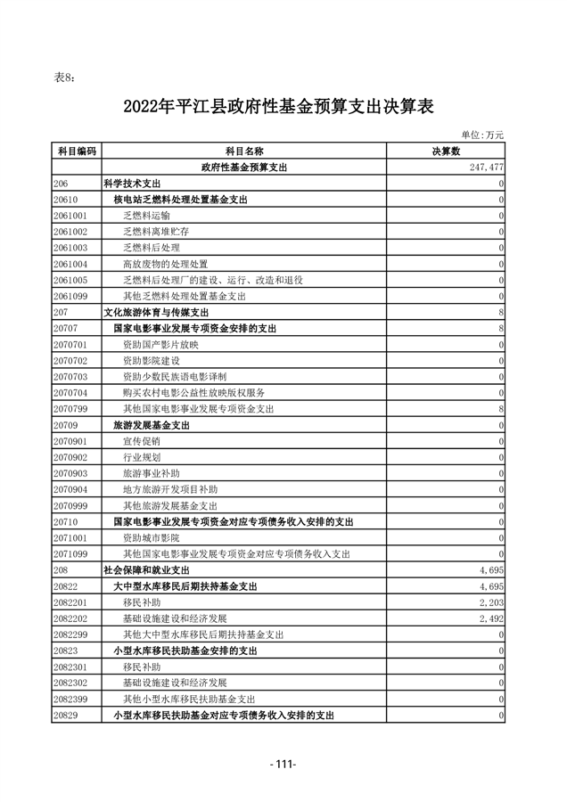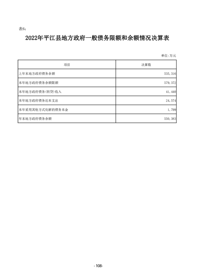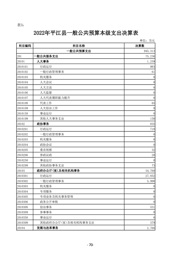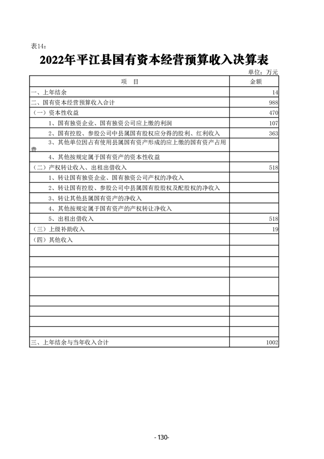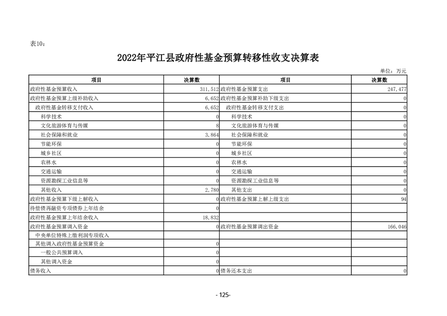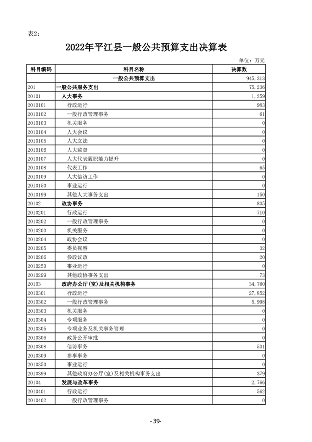 2022年度平江县政府决算公开