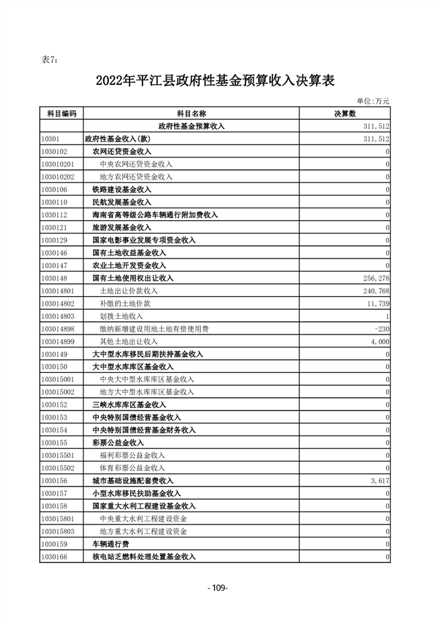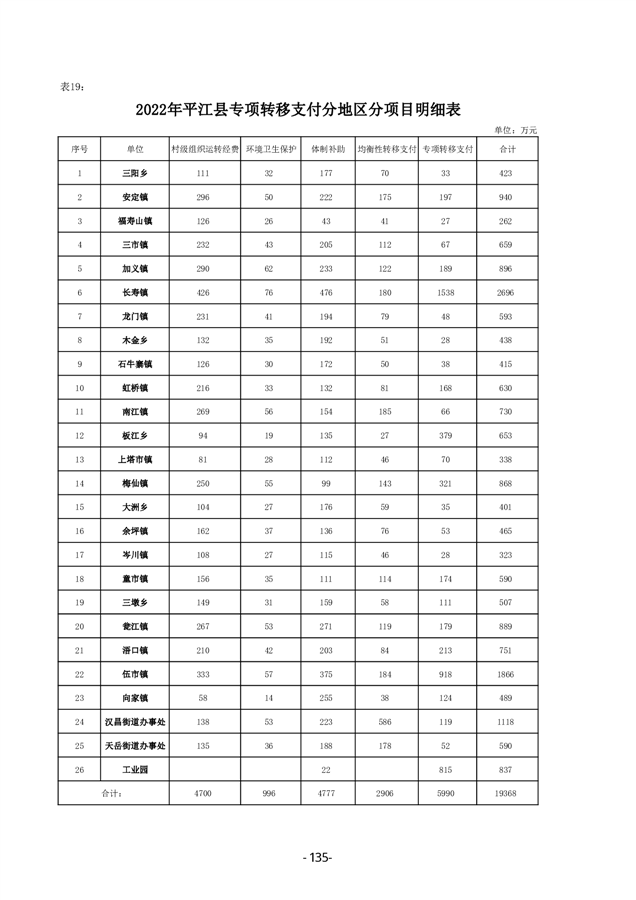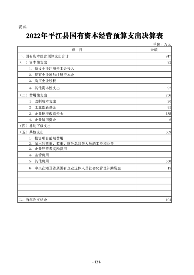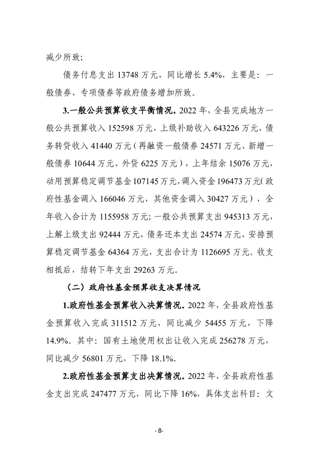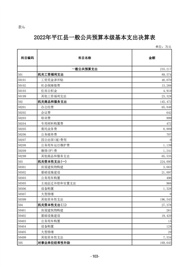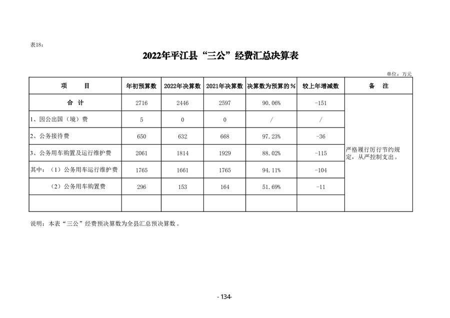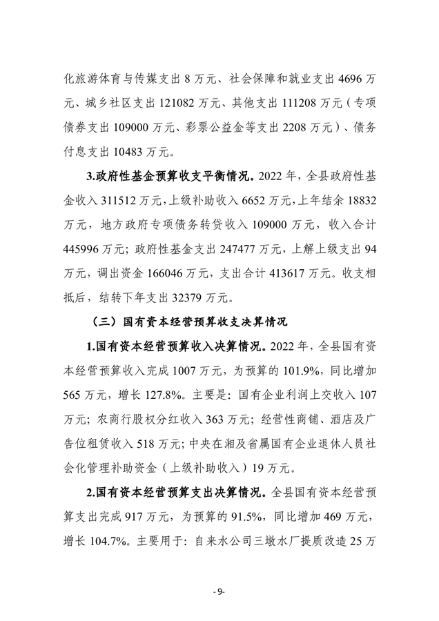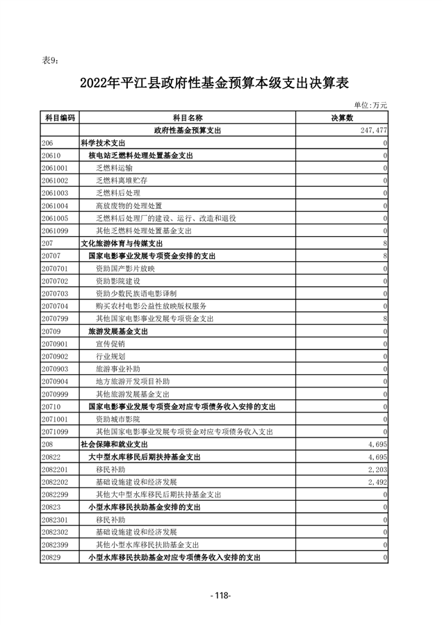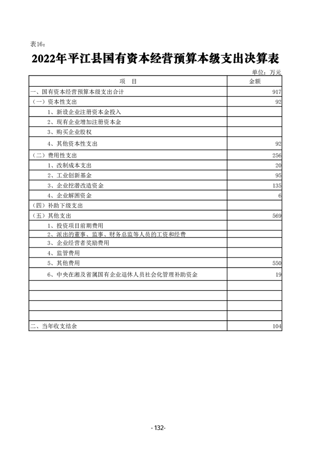 2022年度平江县政府决算公开