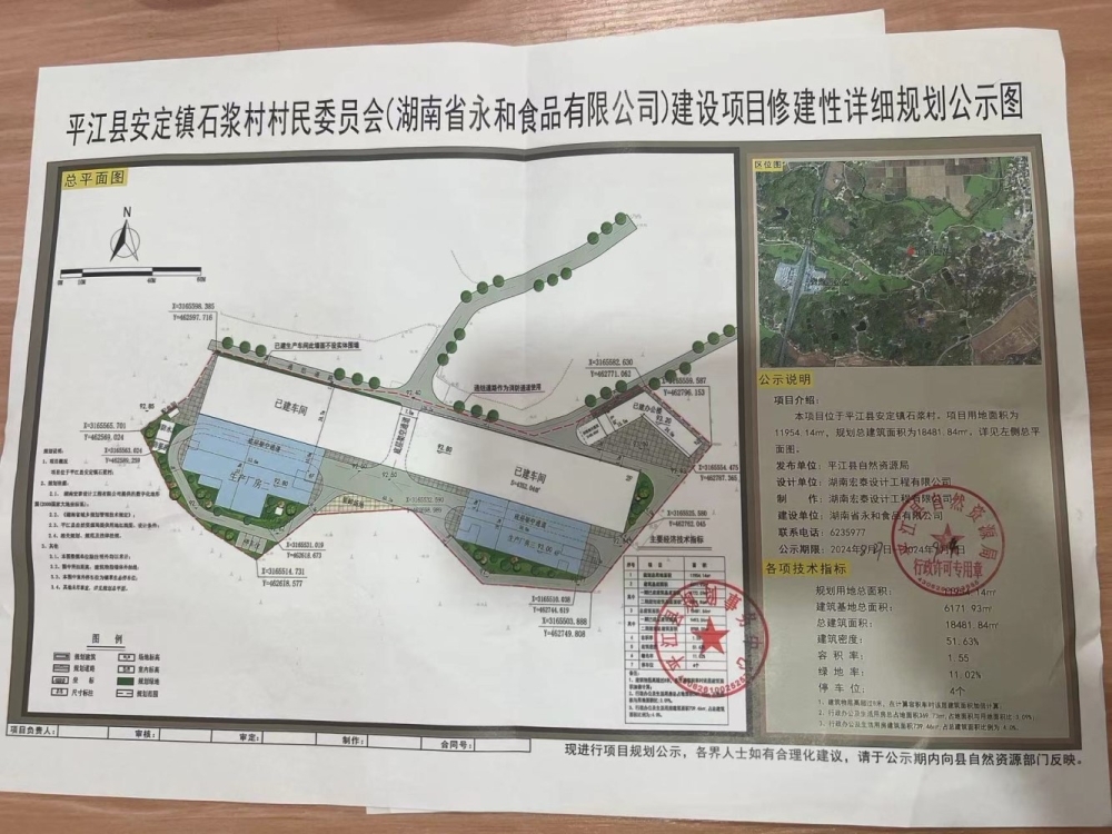 平江县安定镇石浆村村民委员会(湖南省永和食品有限公司)建设项目修建性详细规划公示行政许可公告
