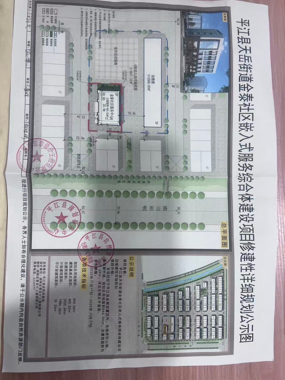 平江县天岳街道金泰社区嵌入式服务综合体建设项目修建性详细规划公示行政许可公告