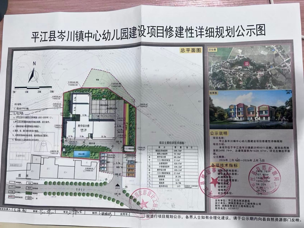平江县岑川镇中心幼儿园建设项目修建性详细规划公示行政许可公告
