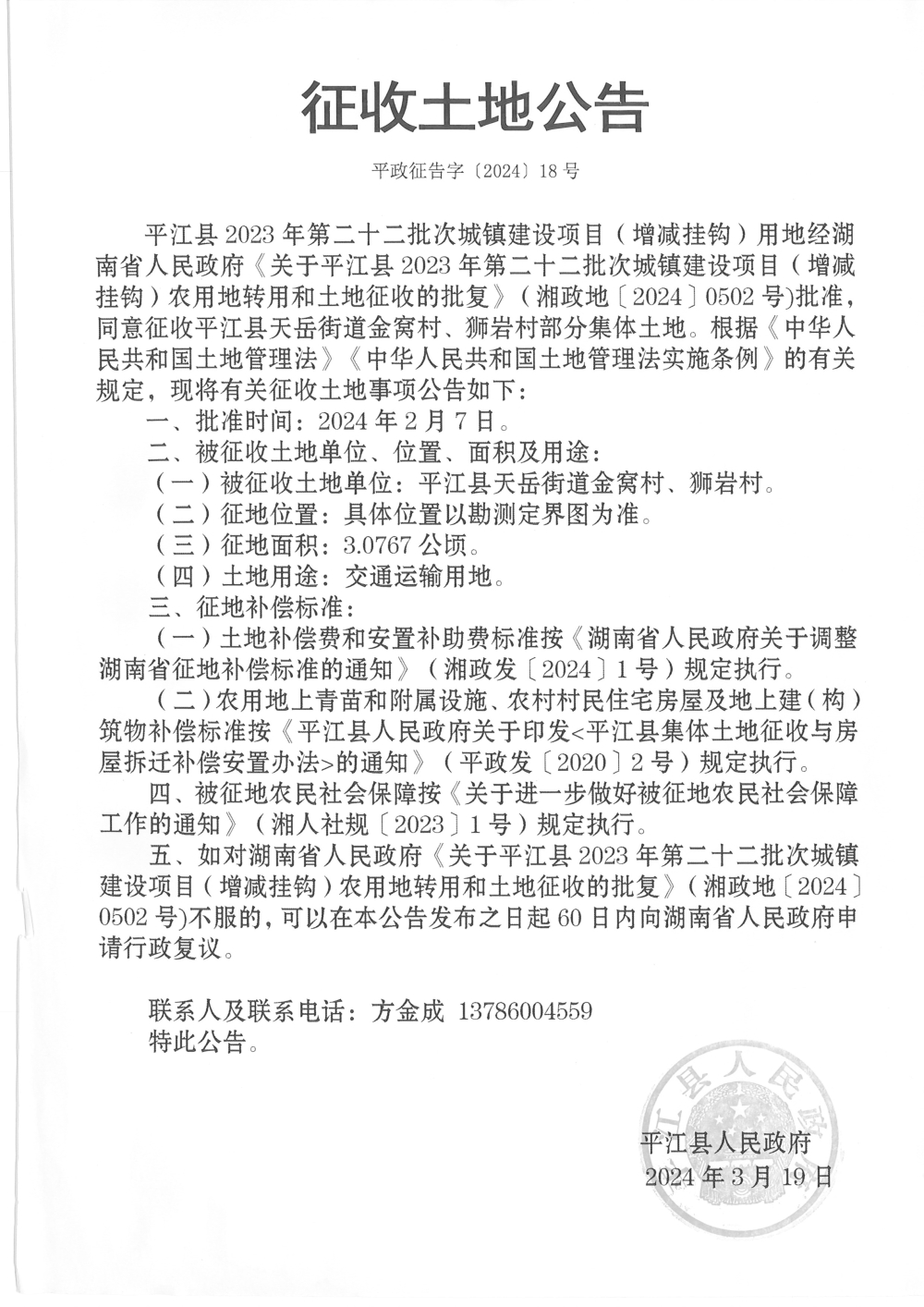 | 公开依据 | 《土地管理法》、《征收土地公告办法》 | ||