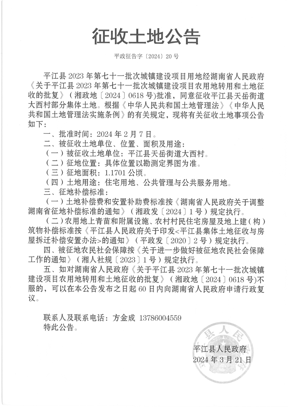 | 公开依据 | 《土地管理法》、《征收土地公告办法》 | ||