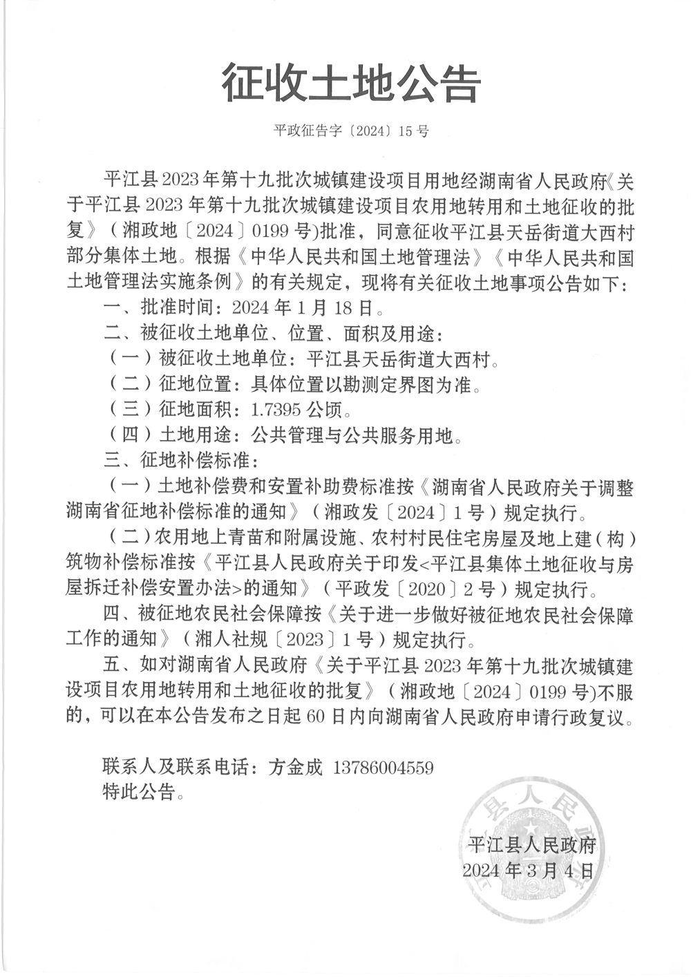 | 公开依据 | 《土地管理法》、《征收土地公告办法》 | ||