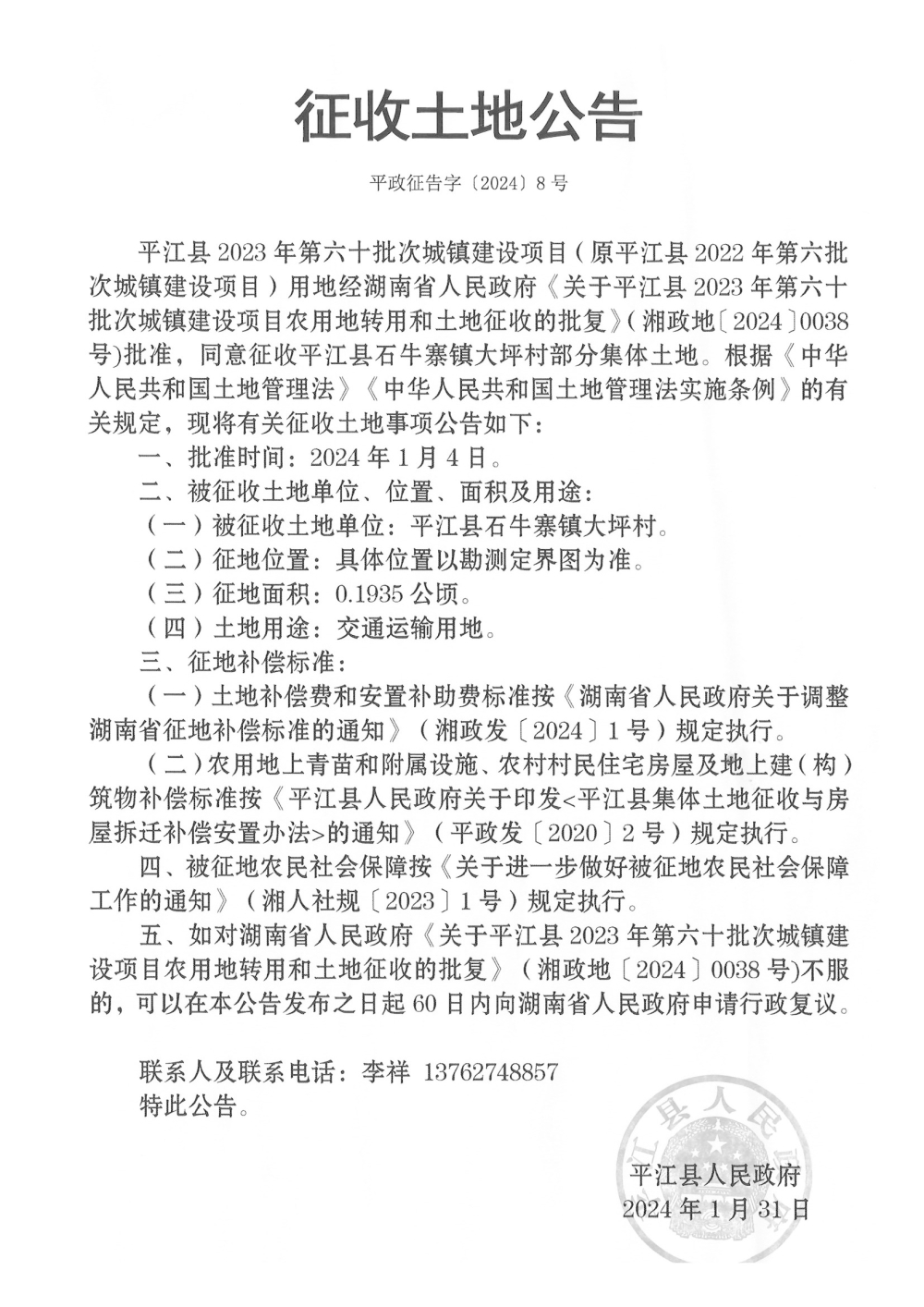平江县2023年第六十批次城镇建设项目