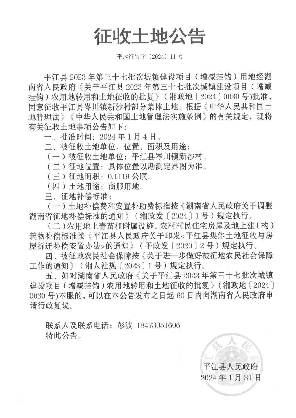平江县2023年第三十七批次城镇建设项目(增减挂钩)
