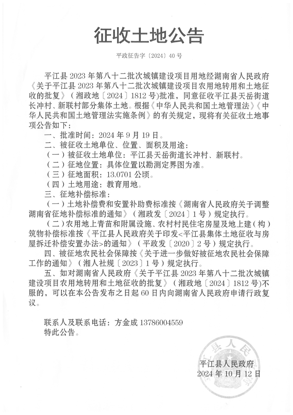 平江县2023年第八十二批次城镇建设项目征收土地公告