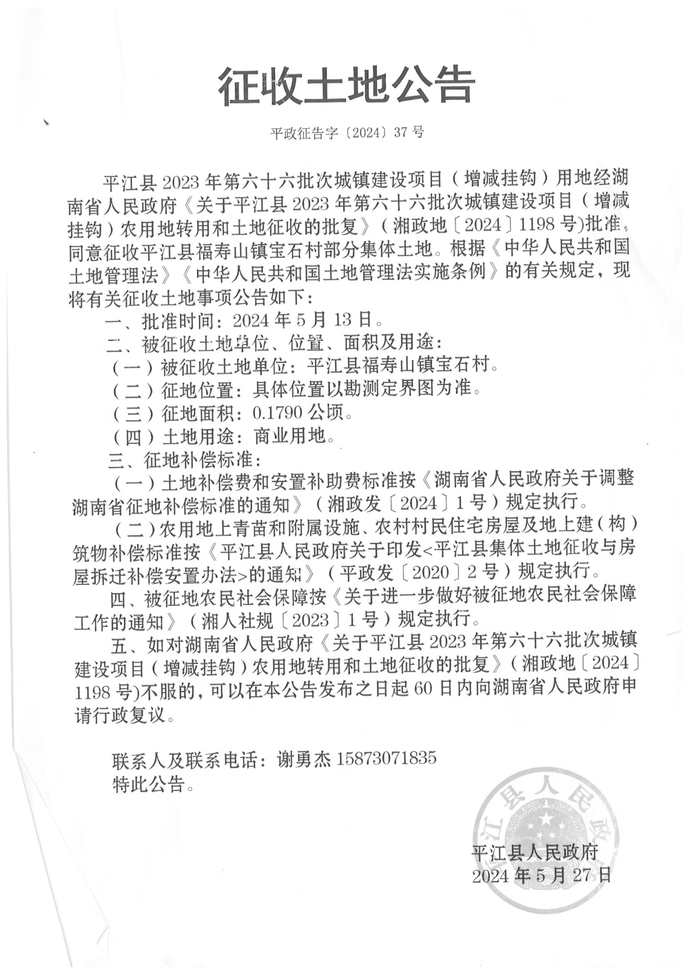 平江县2023年第六十六批次城镇建设项目(增减挂钩)征收土地公告
