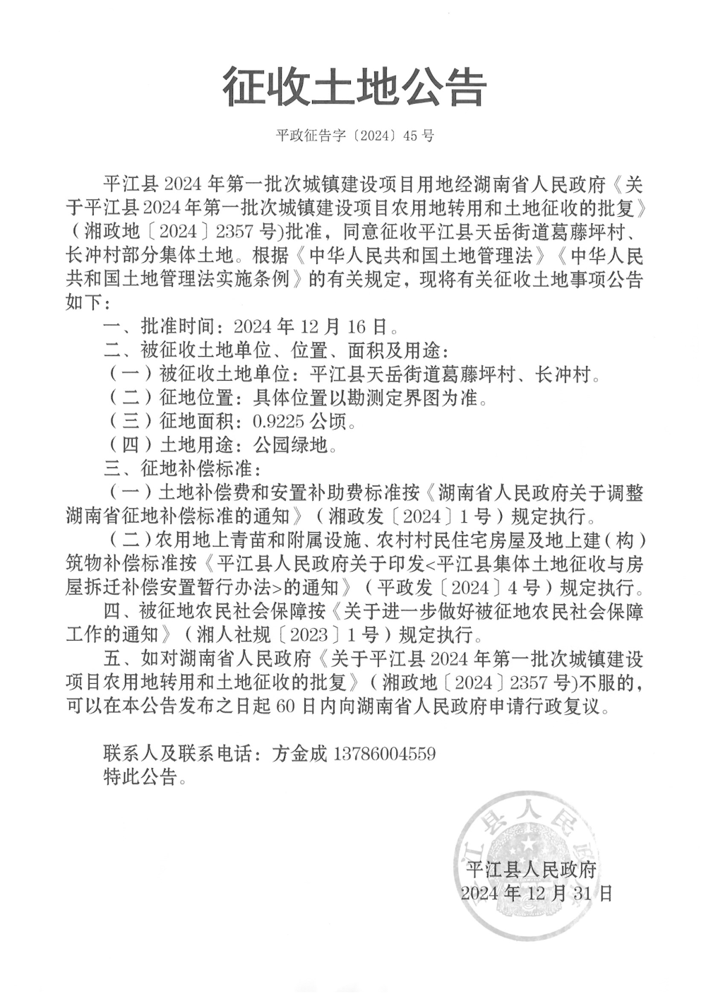 | 公开依据 | 《土地管理法》、《征收土地公告办法》 | ||