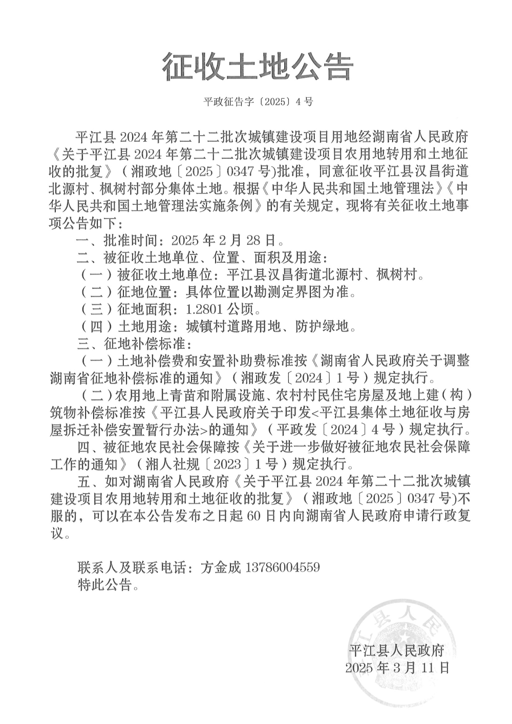 关于2024年第二十二批次城镇建设项目征收土地公告