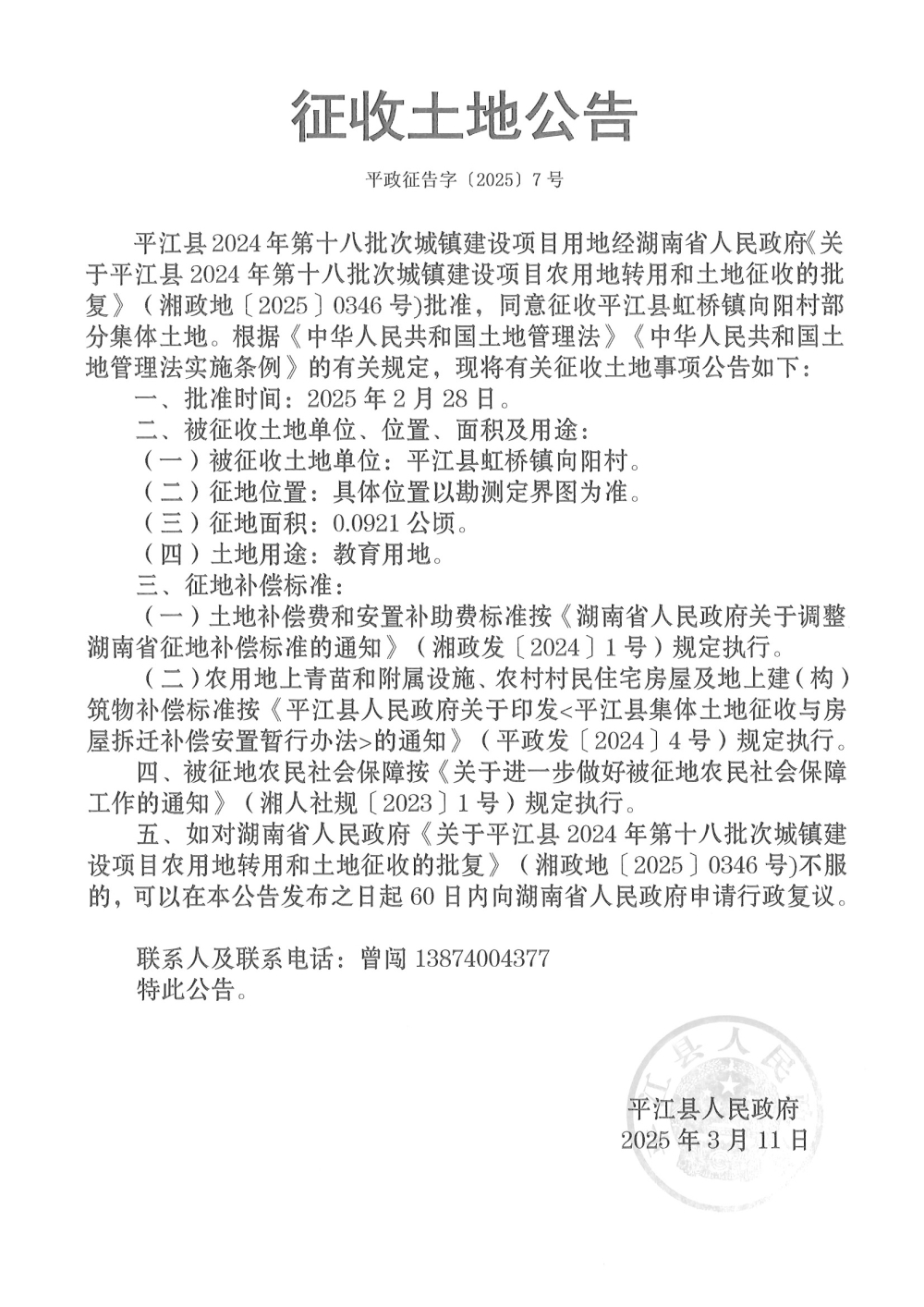 | 公开依据 | 《土地管理法》、《征收土地公告办法》 | ||