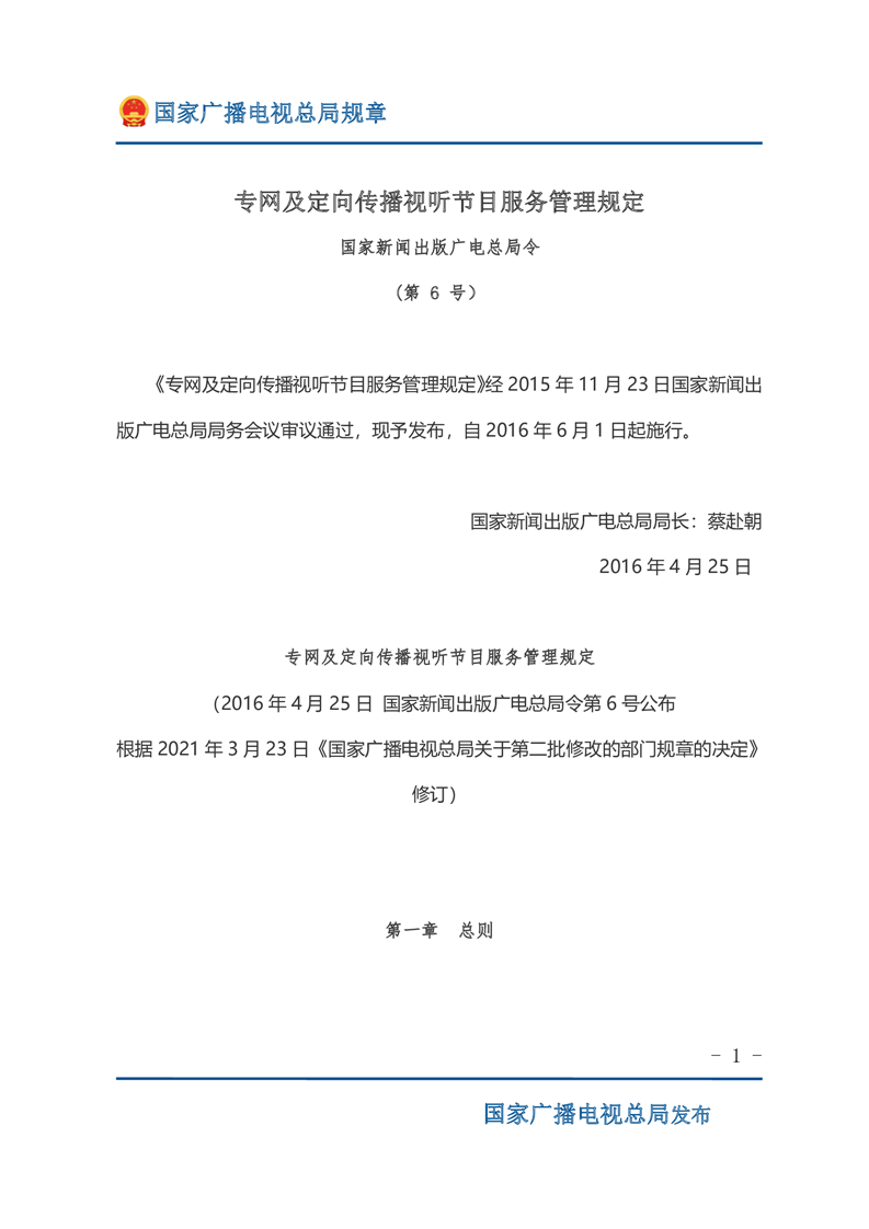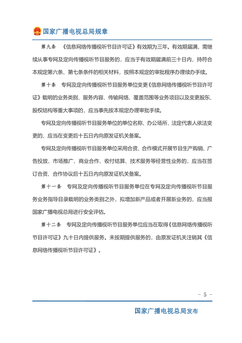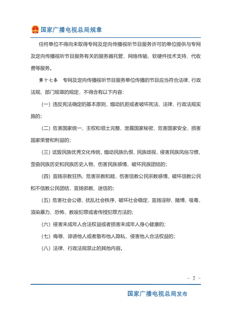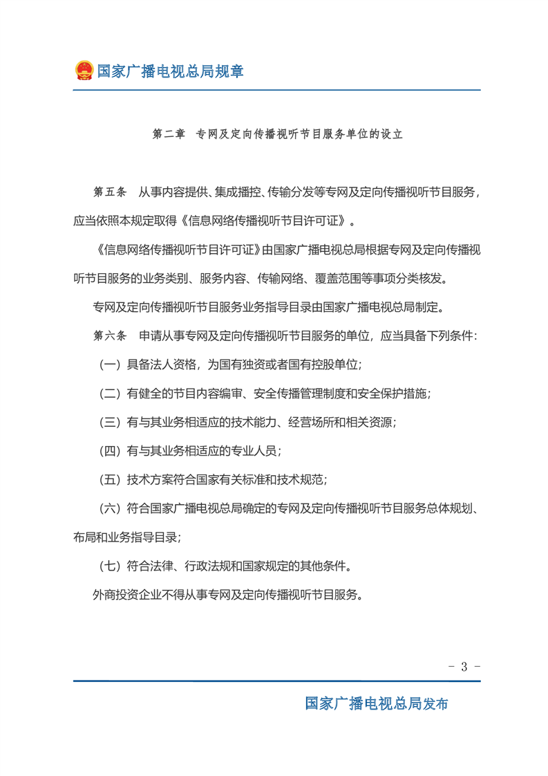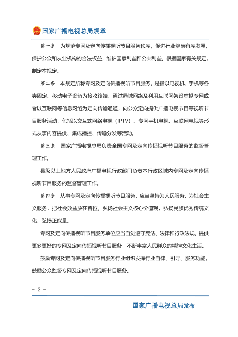 专网及定向传播视听节目服务管理规定