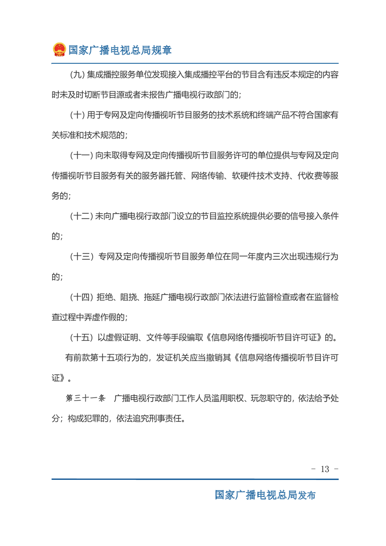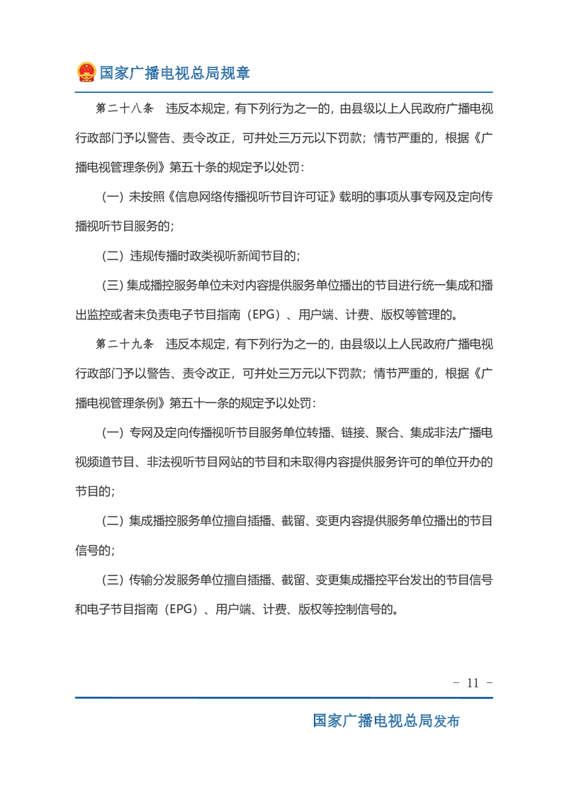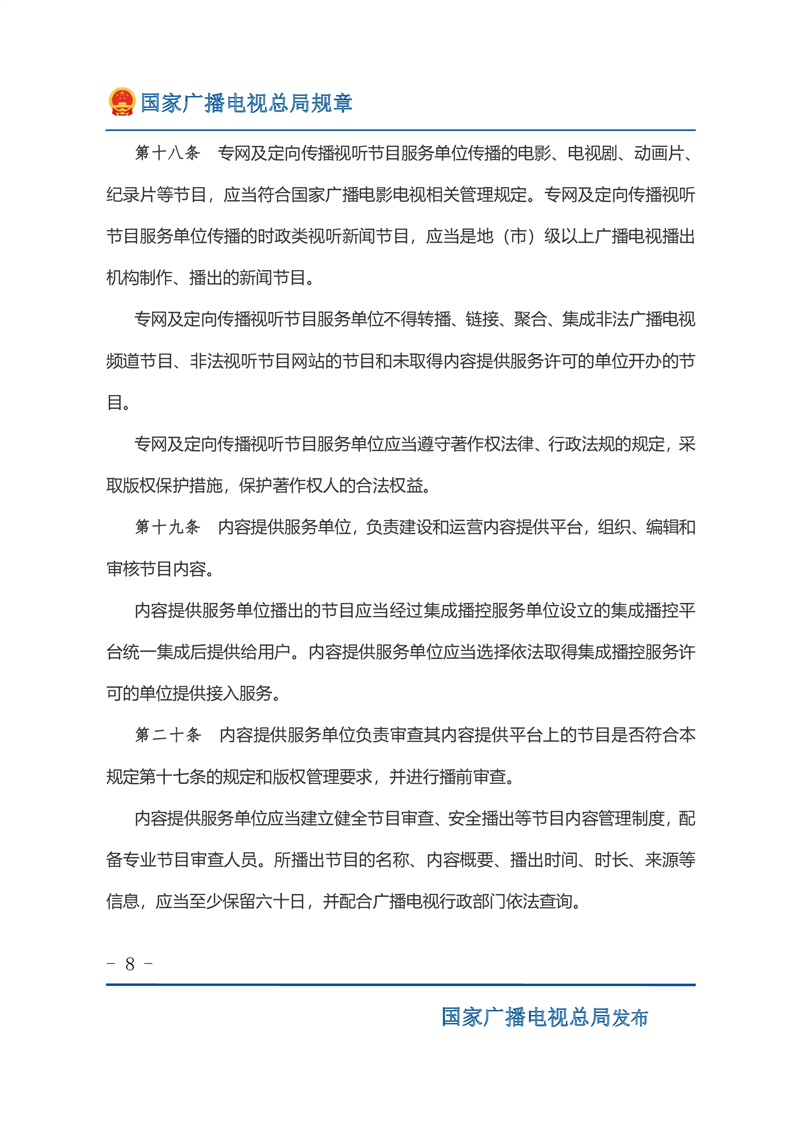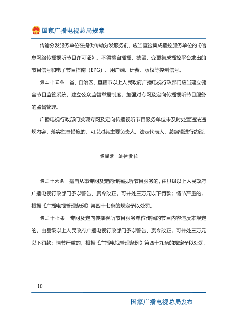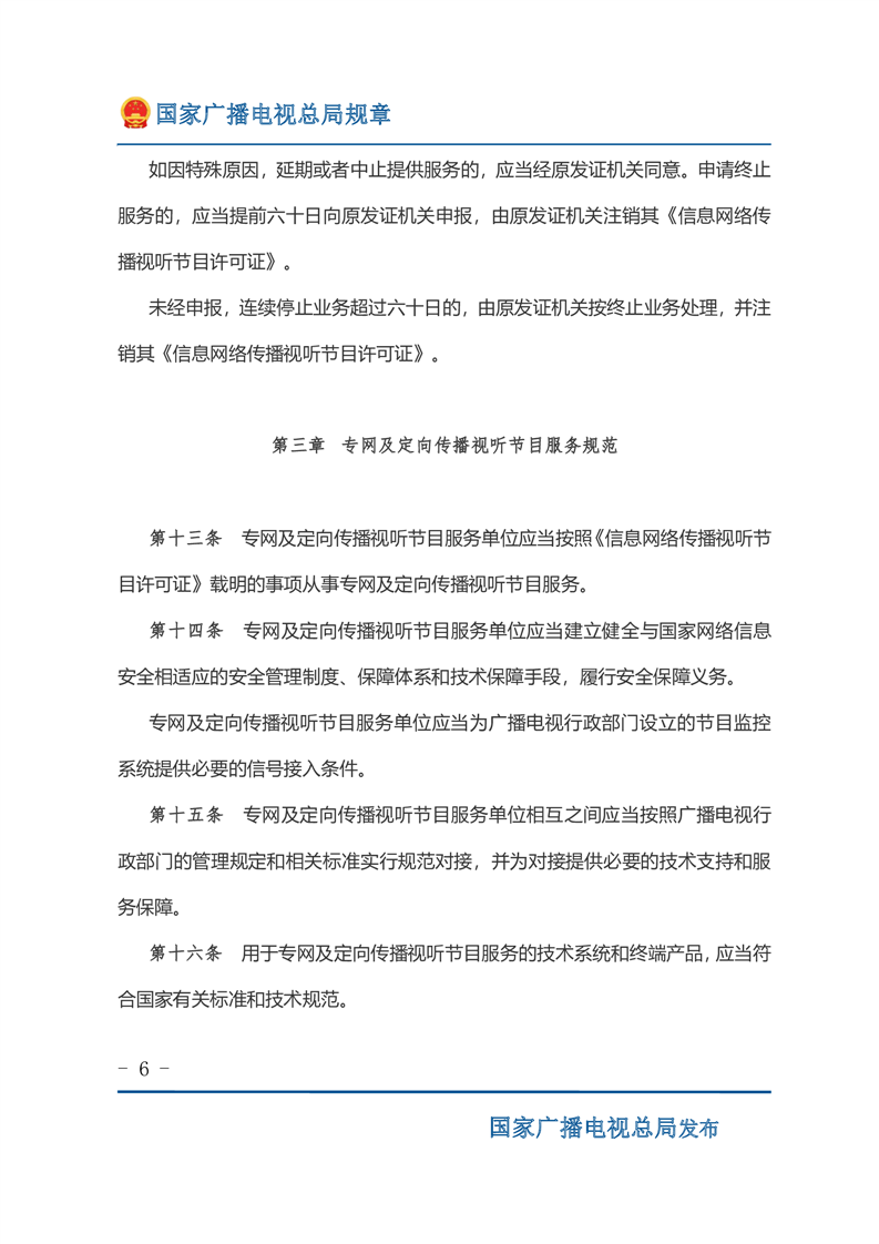 专网及定向传播视听节目服务管理规定