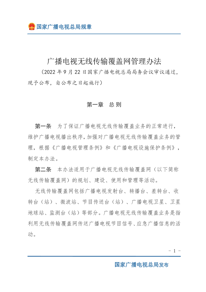 广播电视无线传输覆盖网管理办法