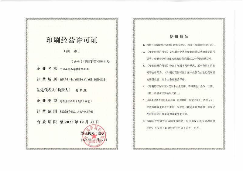 平江县同阜包装有限公司变更法人
