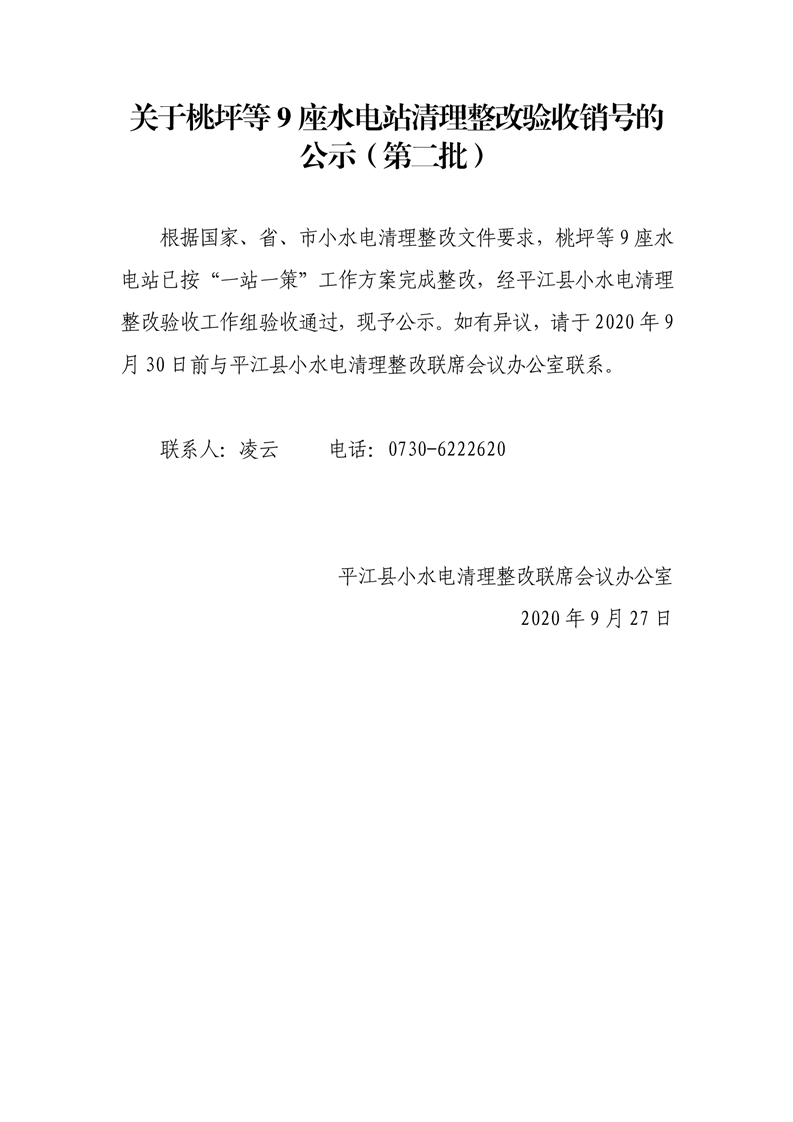 关于桃坪等 9 座水电站清理整改验收销号的 公示(第二批)