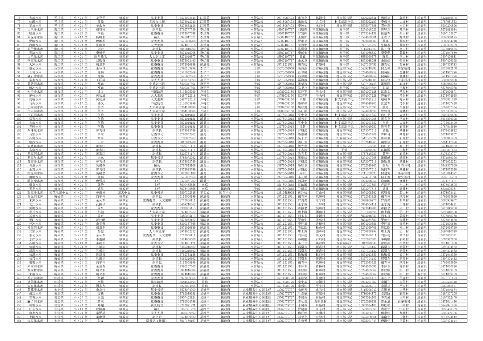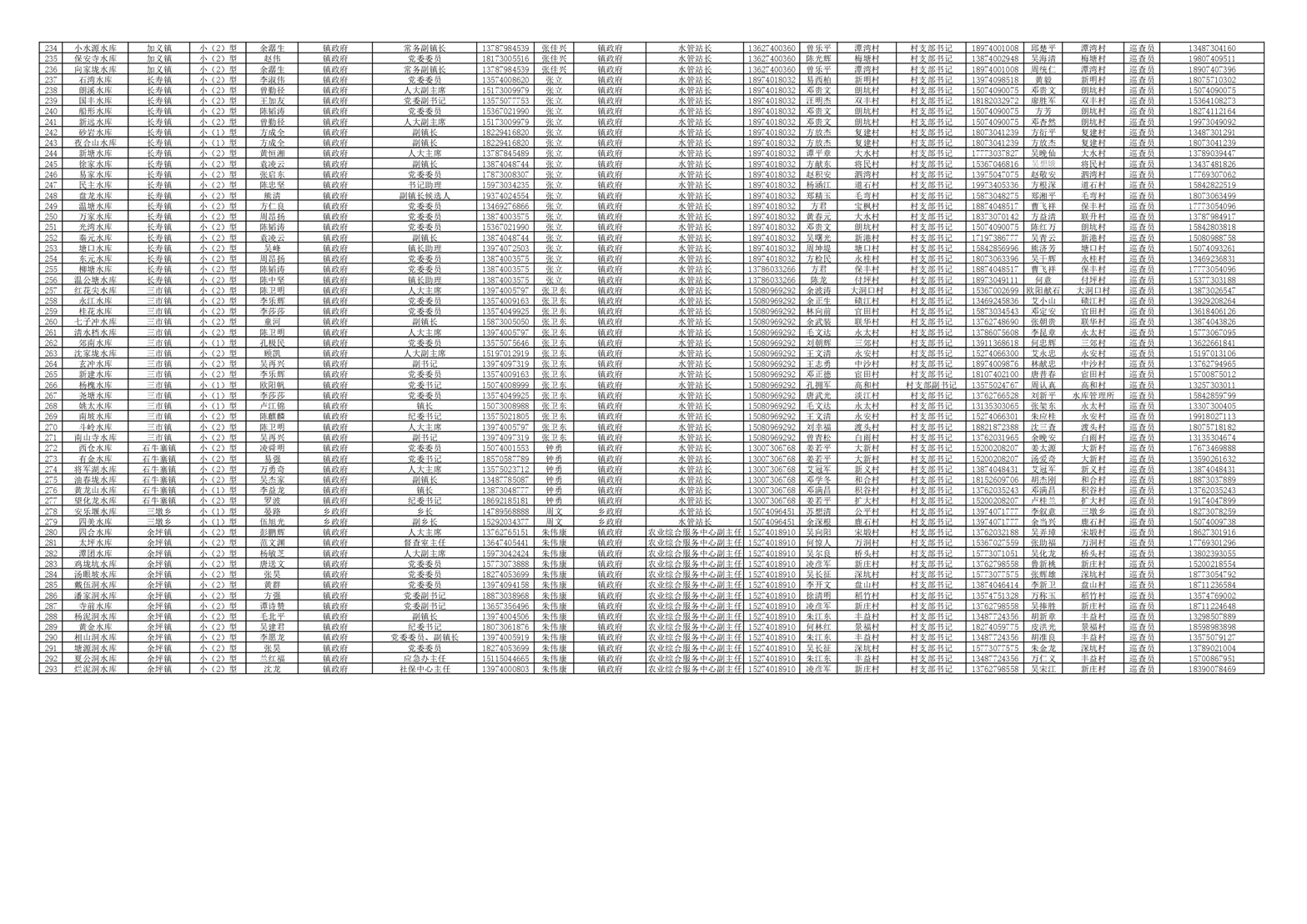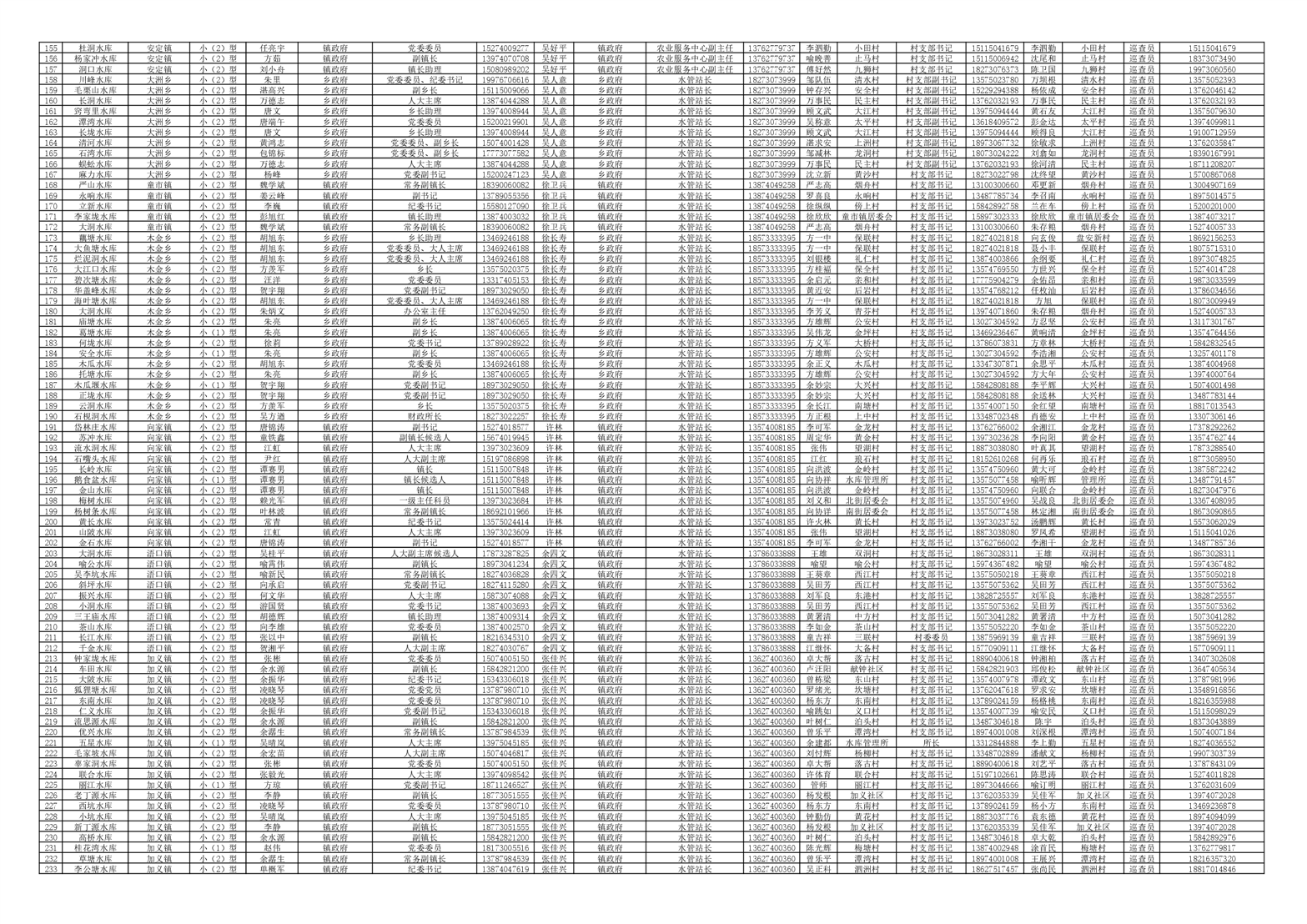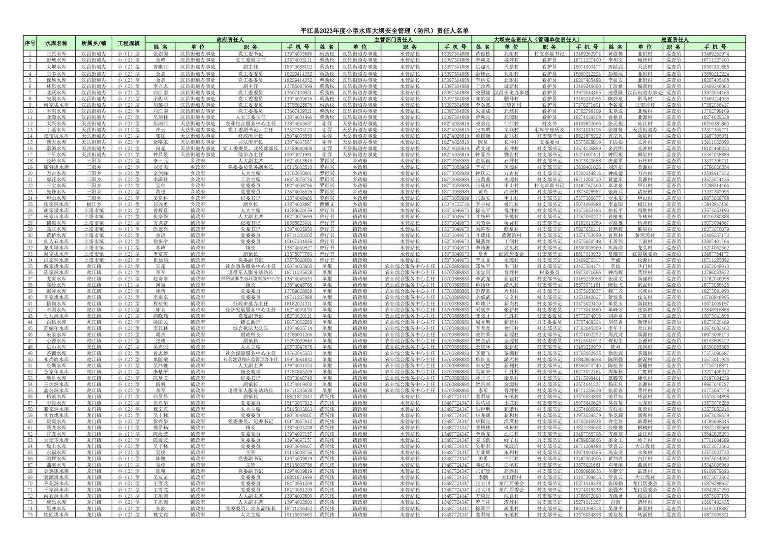 平江县2023年度小型水库大坝安全管理(防汛)责任人名单