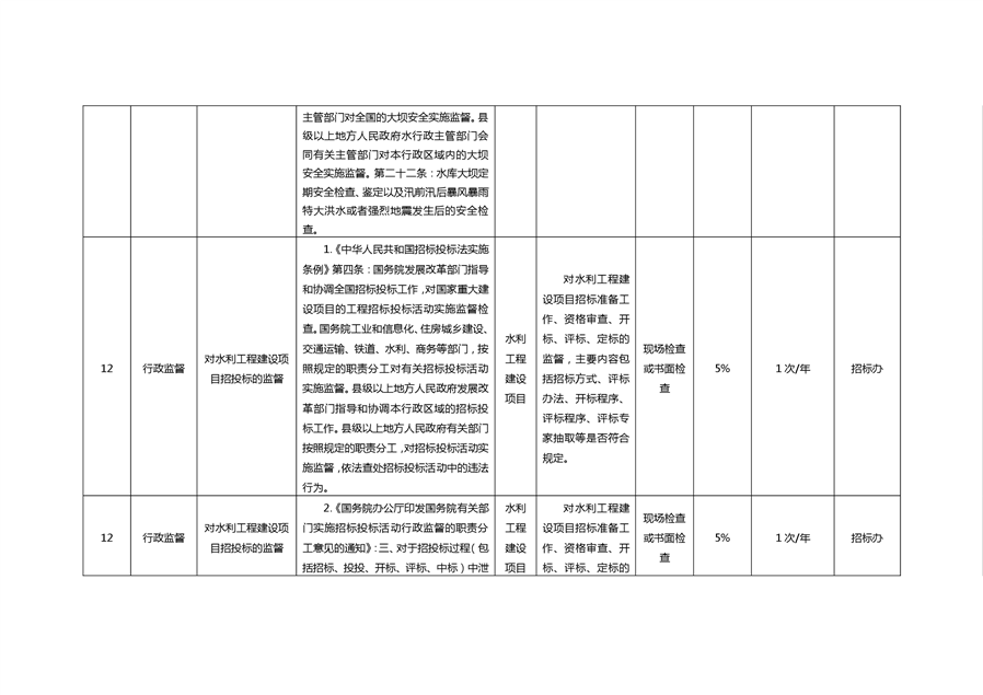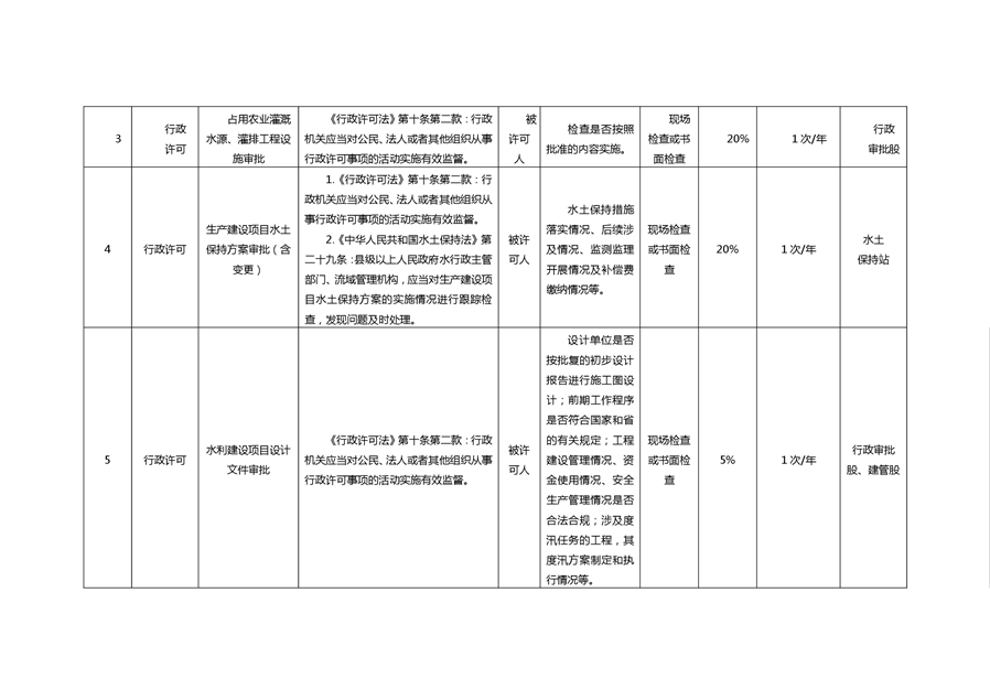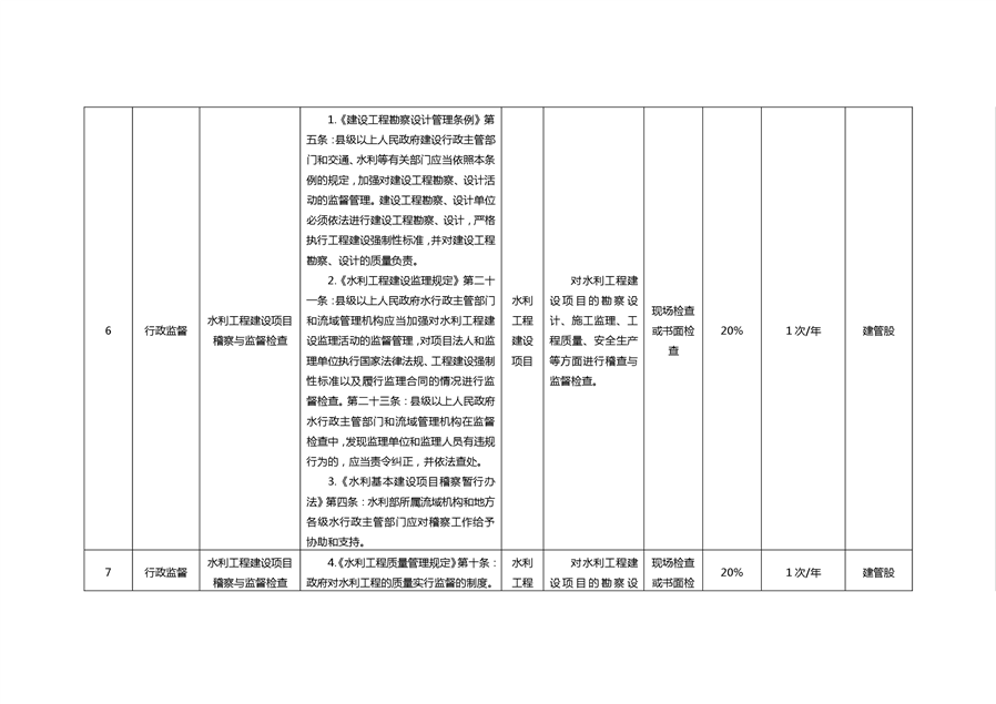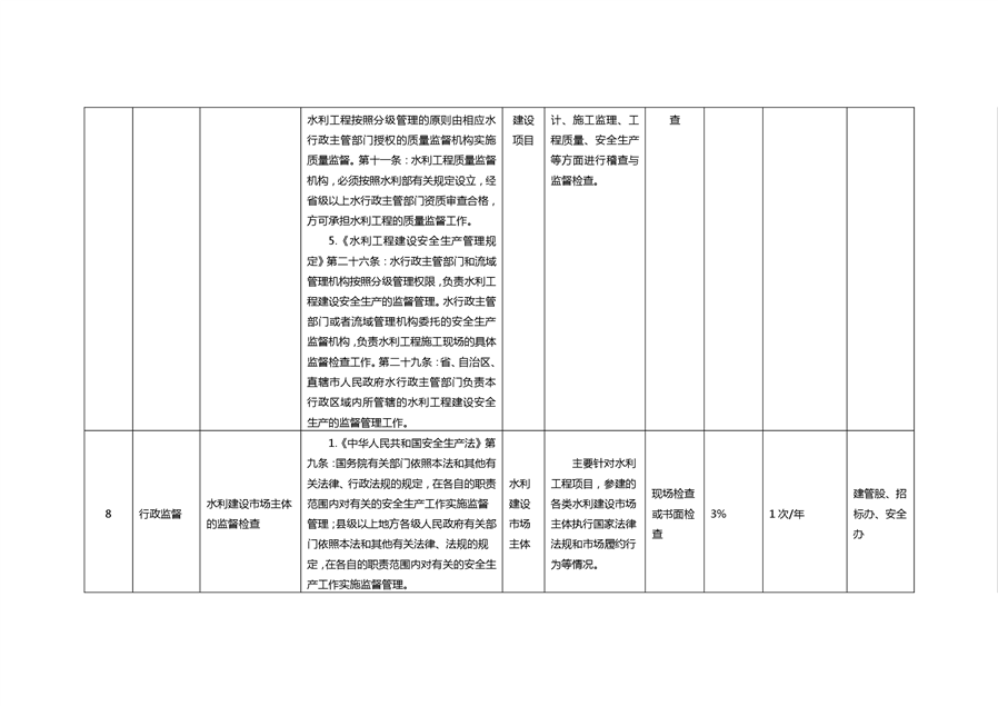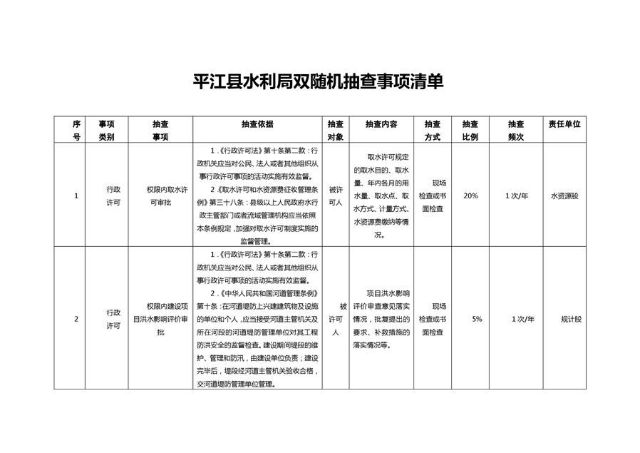 | 公开依据 | 《国务院办公厅关于推广随机抽查规范事中事后监管的通知》《水利部办公厅关于印发推行“双随机一公开”监管工作方案的通知》 | ||