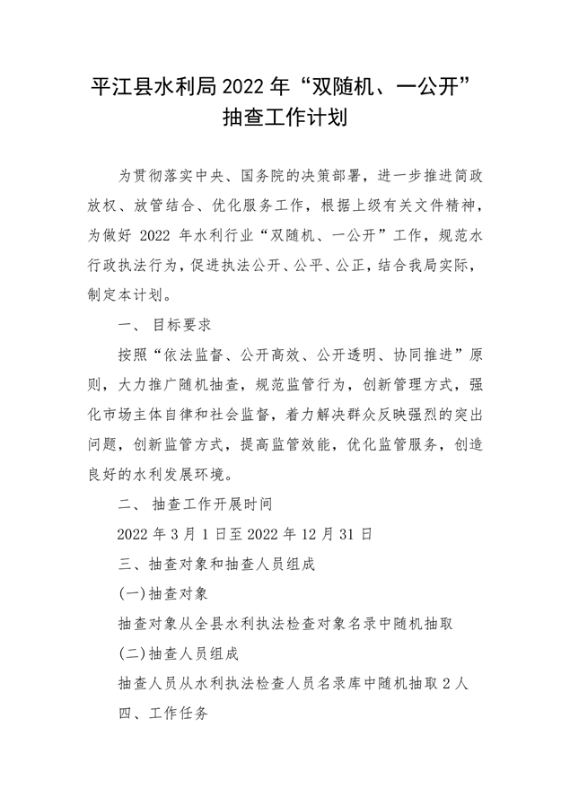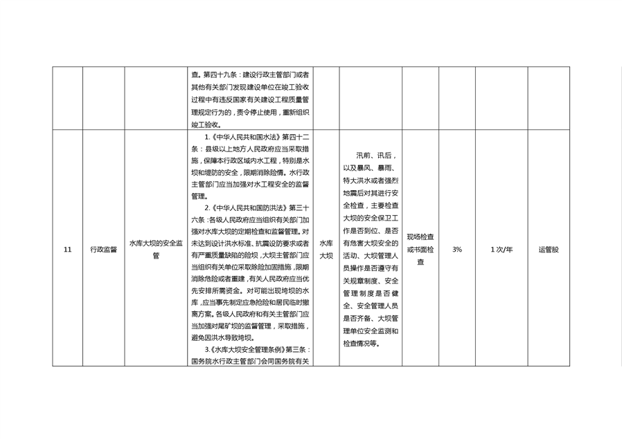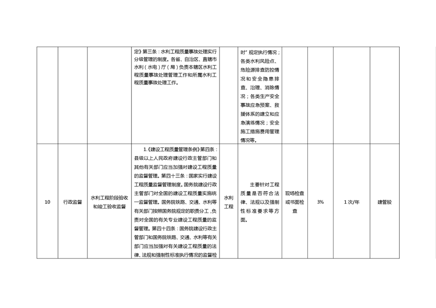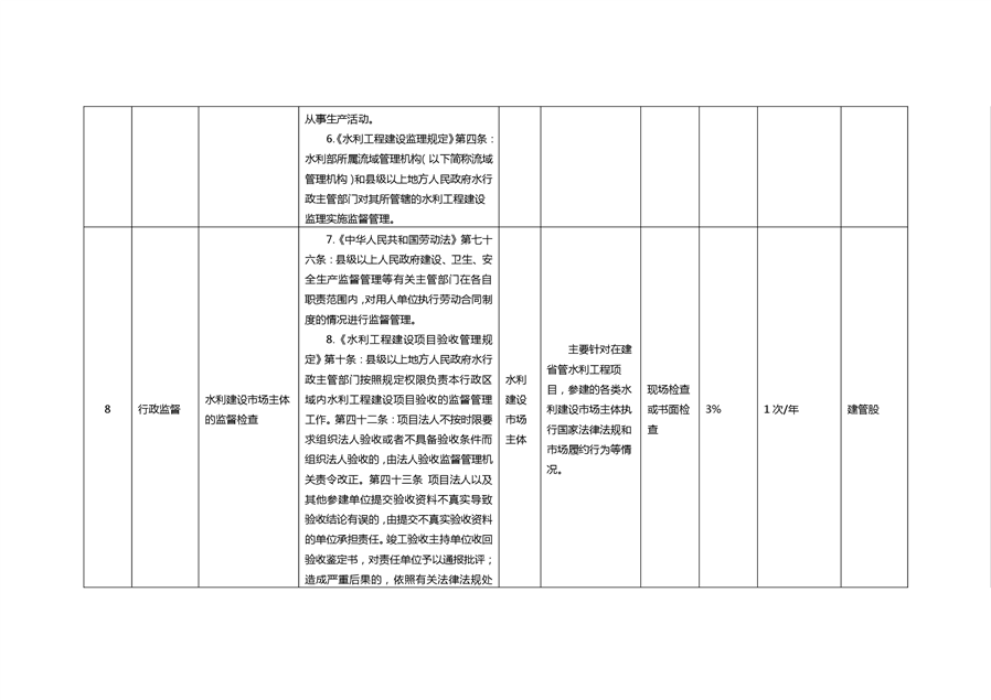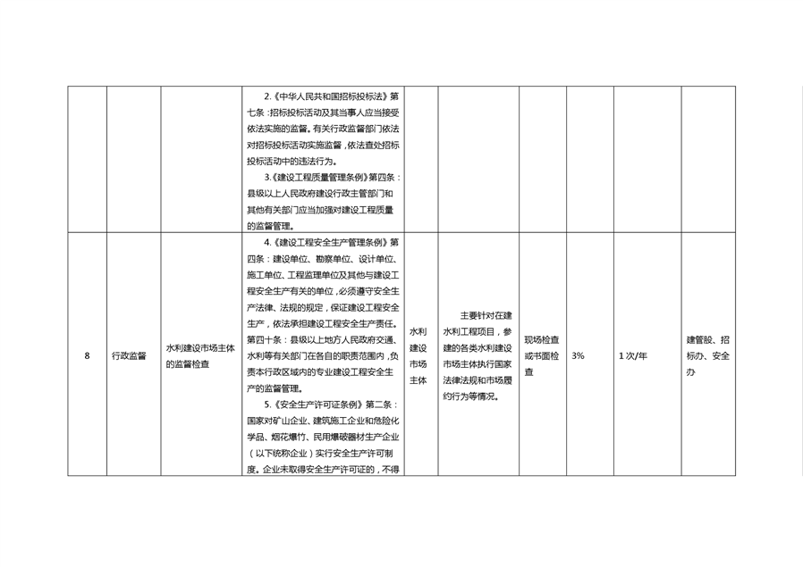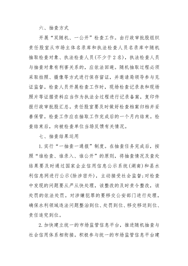 | 公开依据 | 《国务院办公厅关于推广随机抽查规范事中事后监管的通知》《水利部办公厅关于印发推行“双随机一公开”监管工作方案的通知》 | ||