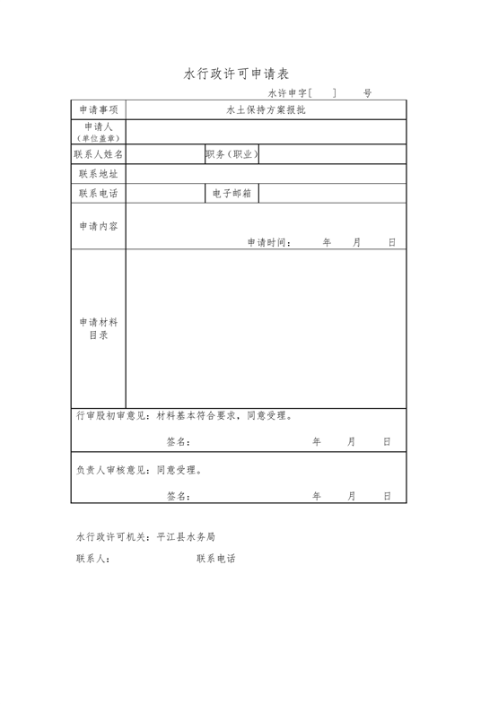 平江县县水利局水行政申请模板