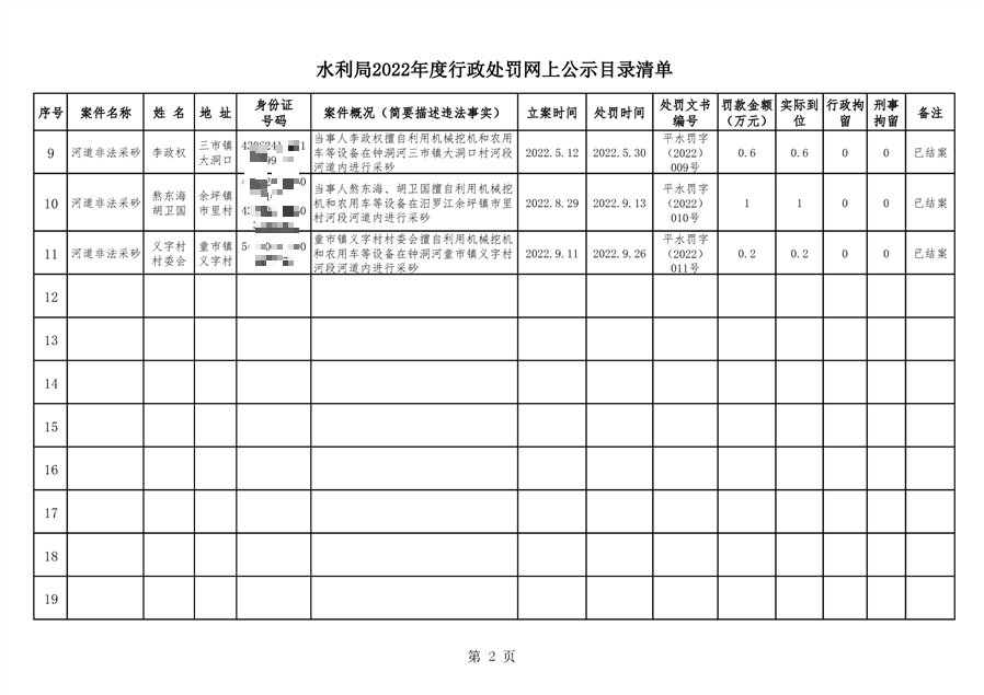 | 公开时限 | 行政处罚的执法决定信息在执法决定作出之日起7个工作日内,其他信息形成或者变更之日起20个工作日内 | 公开方式 | 主动 |