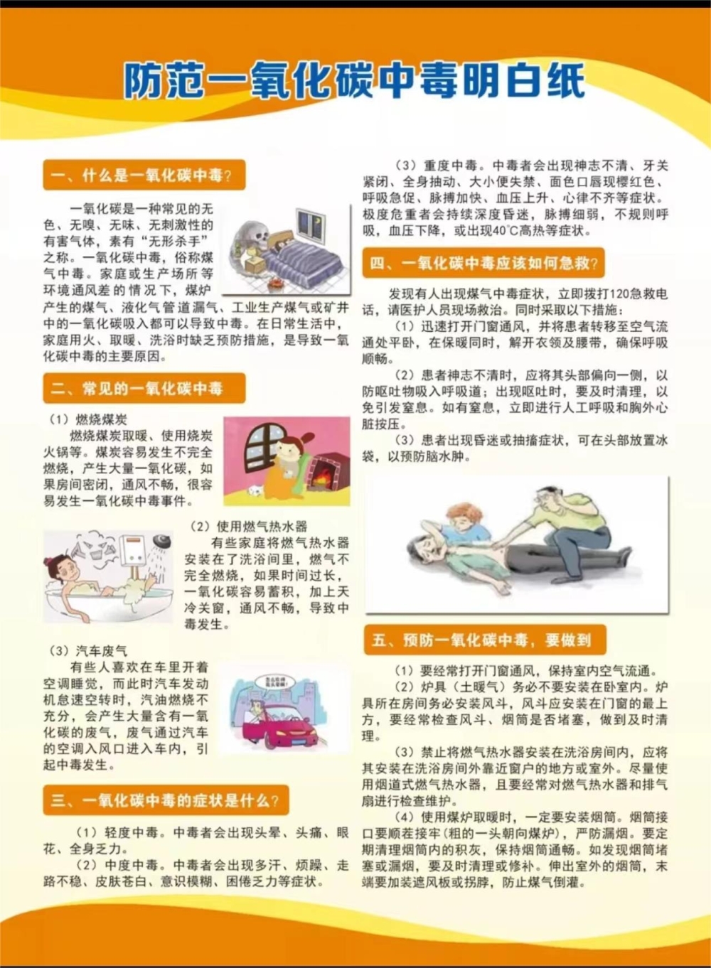 防范一氧化碳中毒明白纸