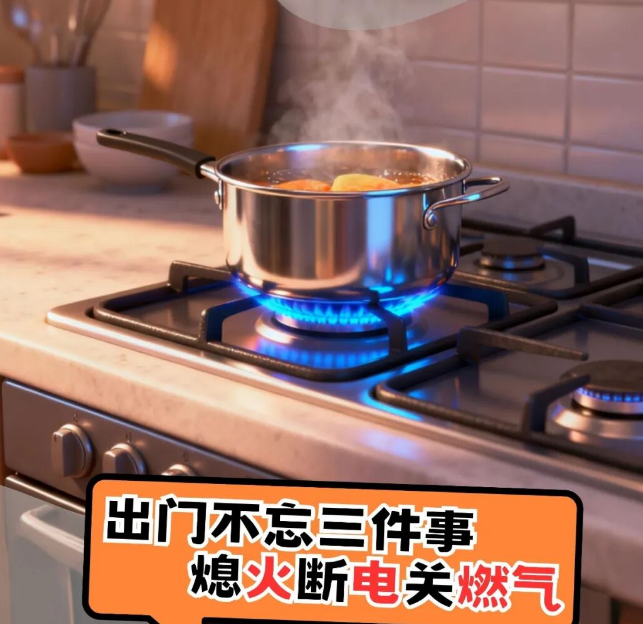 严禁在公共楼道、楼梯间、安全出口停放电动自行车及飞线充电。 家中安装防盗窗时,应预留可从内部快速开启的逃生窗口,以备紧急情况下顺利撤离。 04应急处置有章法,安全守护不打烊 养成“出门三查”习惯:查电源是否切断、查火源是否熄灭、查气源是否关闭,做到人走断电、火熄、气关。