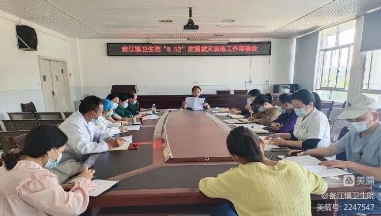 今年5月12日是我国第14个全国防灾减灾日,全国防灾减灾日主题为:减轻灾害风险守护美好家园。为扎实做好第14个“全国防灾减灾日”宣传教育工作,切实提高全院职工的防灾减灾意识和能力,5月10-5月17日,瓮江镇卫生院开展了“5.12全国防灾减灾日”系列活动。 5月5日,瓮江镇卫生院召开班子及中层干部开展全国防灾减灾宣传、演练及防溺水工作部署会,利用电子屏宣传各类防灾减灾标语,通过手机微信、朋友圈、公卫进院体检发放宣传资料等多形式宣传,做好防灾减灾演练预案、宣传方案,形成全社会参与防灾减灾的良好氛围。