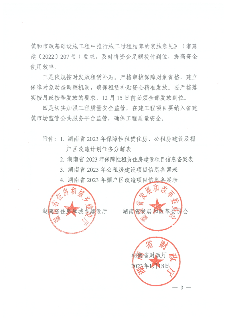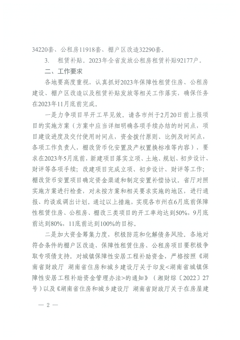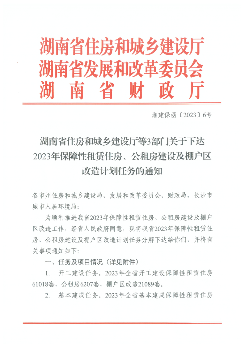 湖南省住房和城乡建设厅等3部门关于下达2023年保障性租赁住房、公租房建设及棚户区改造计划任务的通知(湘建保函[2023]6号)