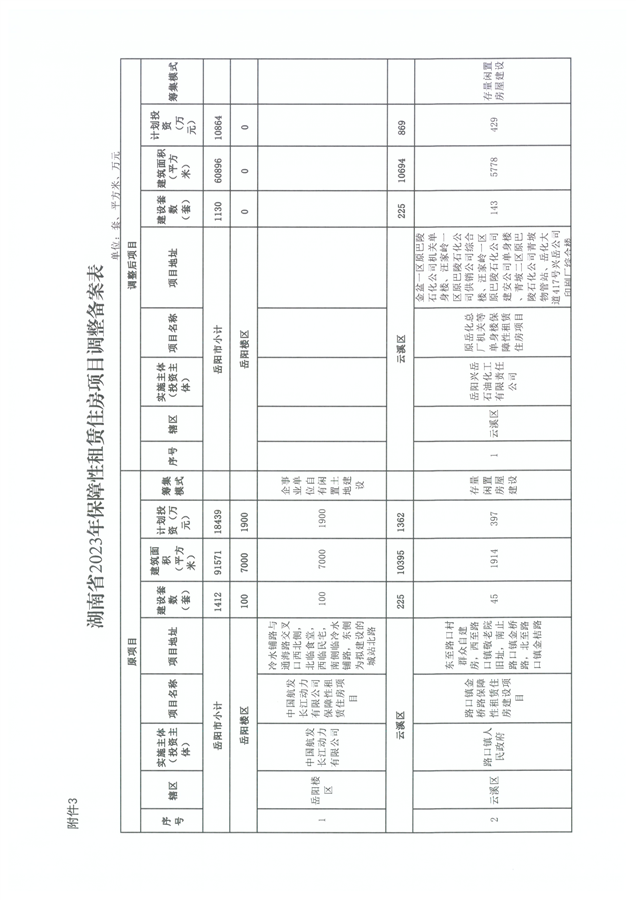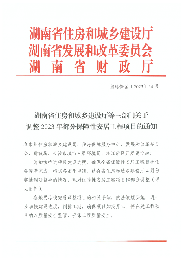湖南省住房和城乡建设厅等三部门关于调整2023年部分保障性安居工程项目的通知(湘建保函[2023]54号)