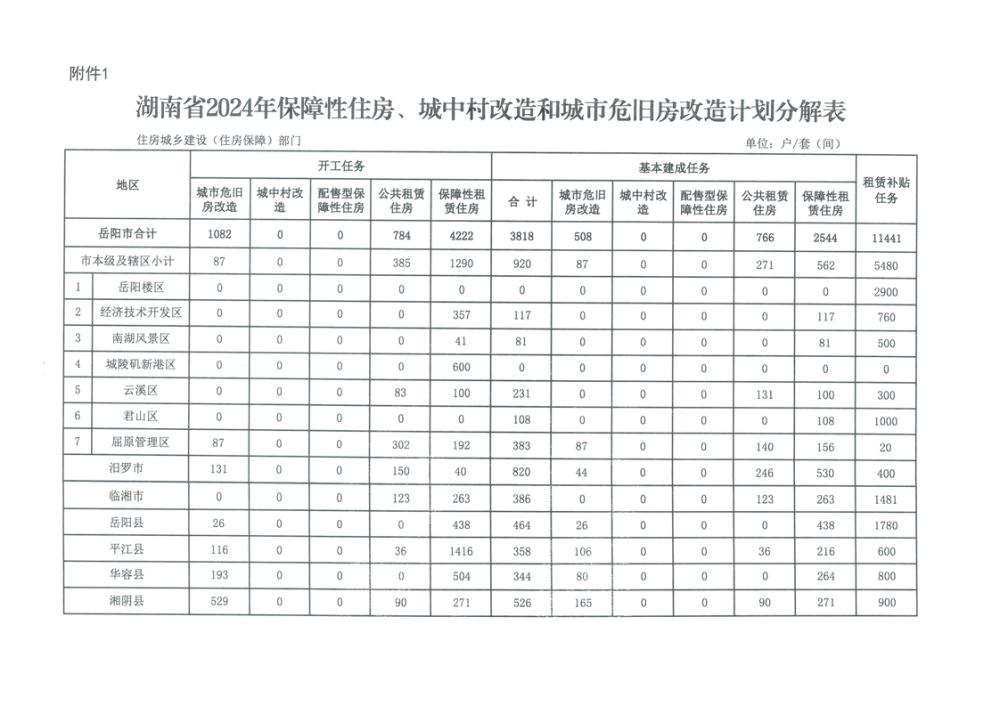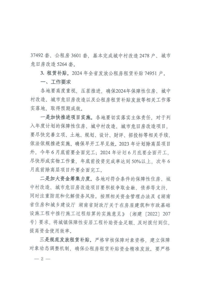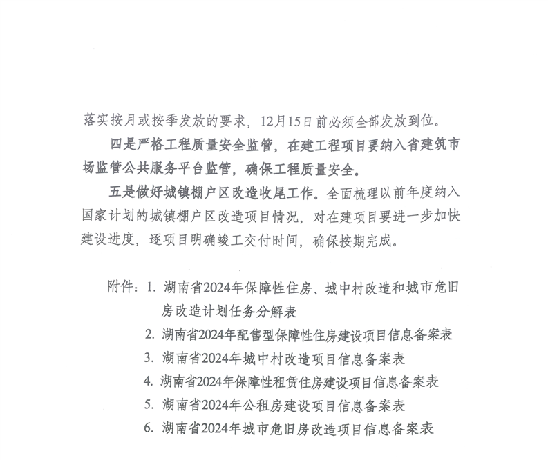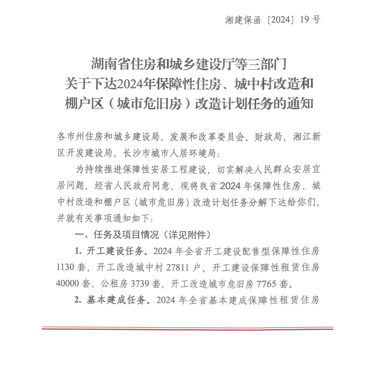 关于下达2024年保障性住房、城中村改造和棚户区(城市危旧房)改造计划任务的通知(湘建保函[2024]19号)
