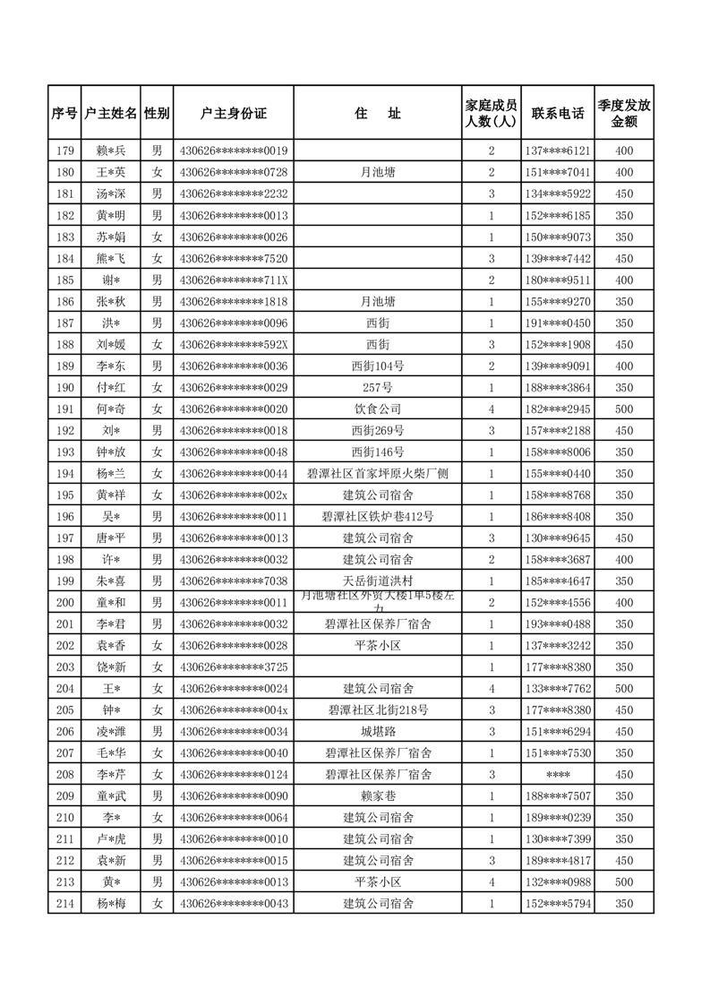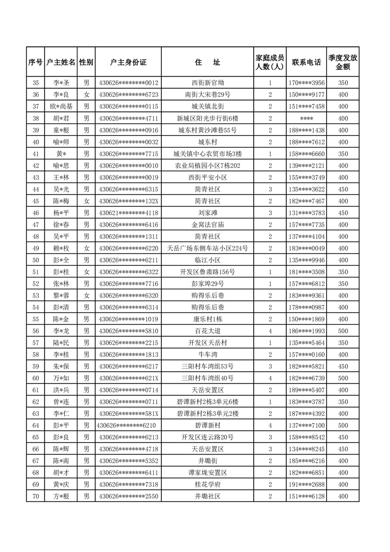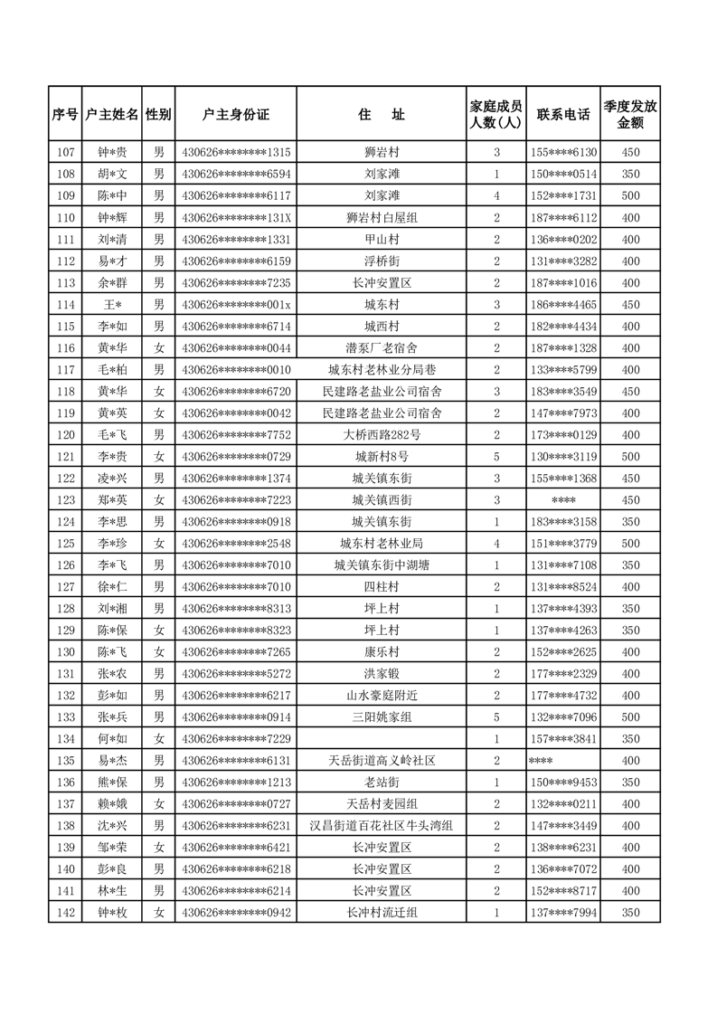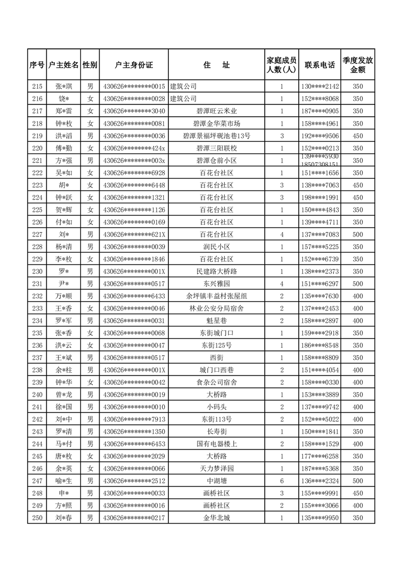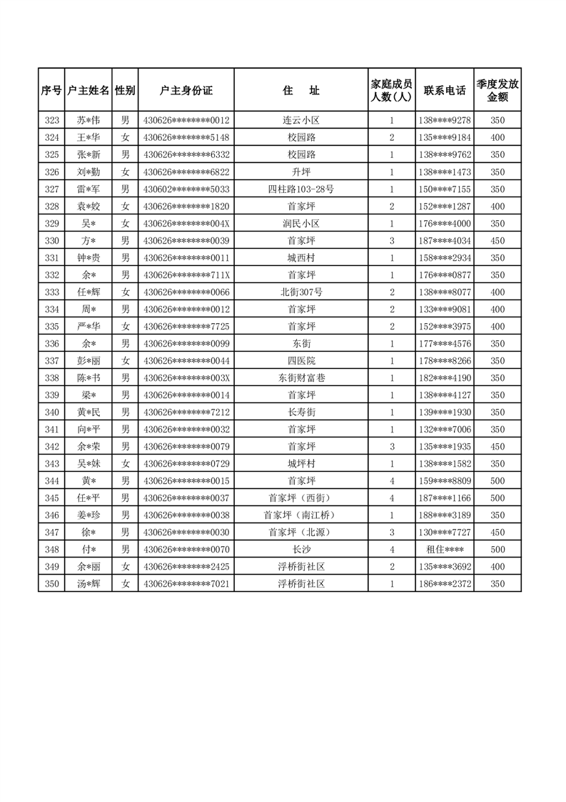 平江县2024年三季度租赁补贴保障花名册