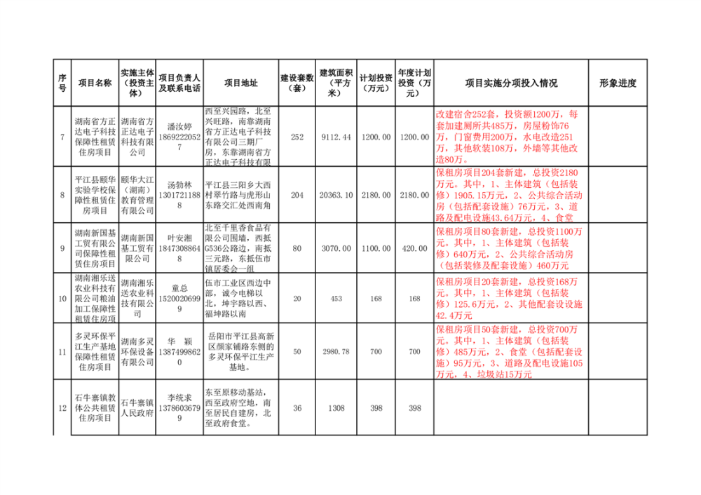 平江县2024年保障性租赁住房建设项目信息备案表