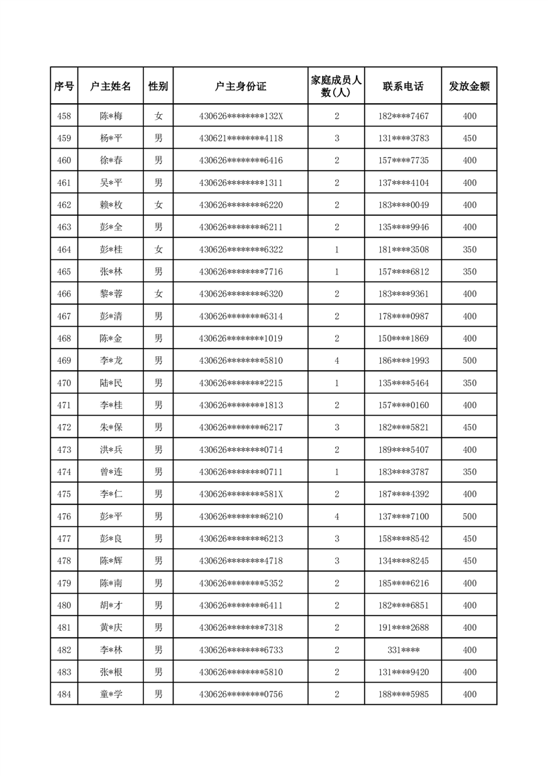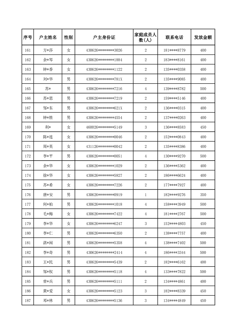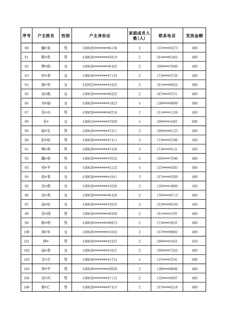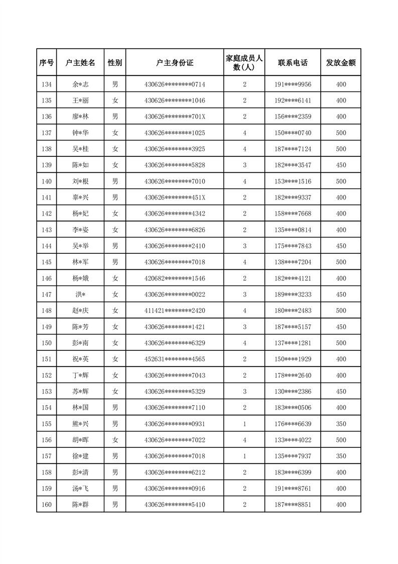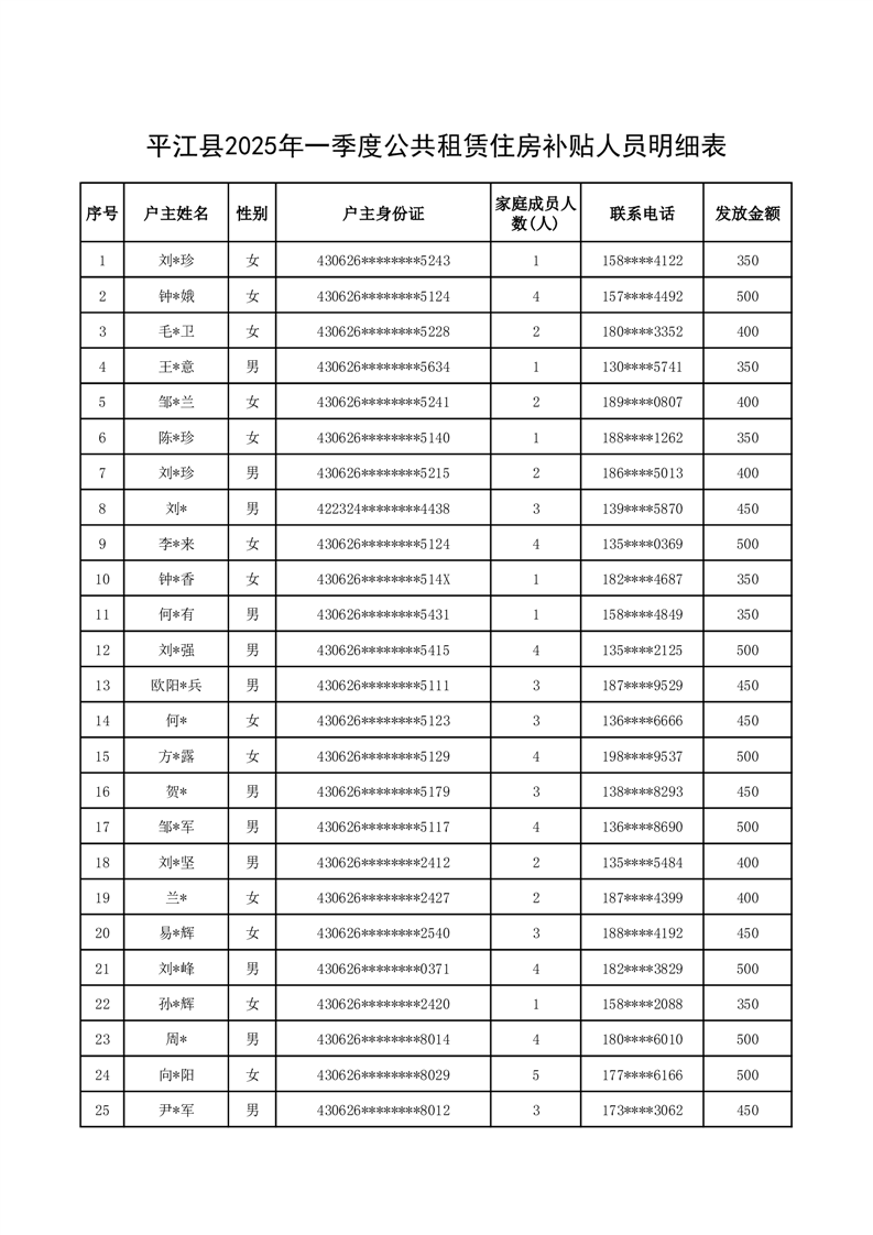 平江县一季度公共租赁住房补贴人员明细表