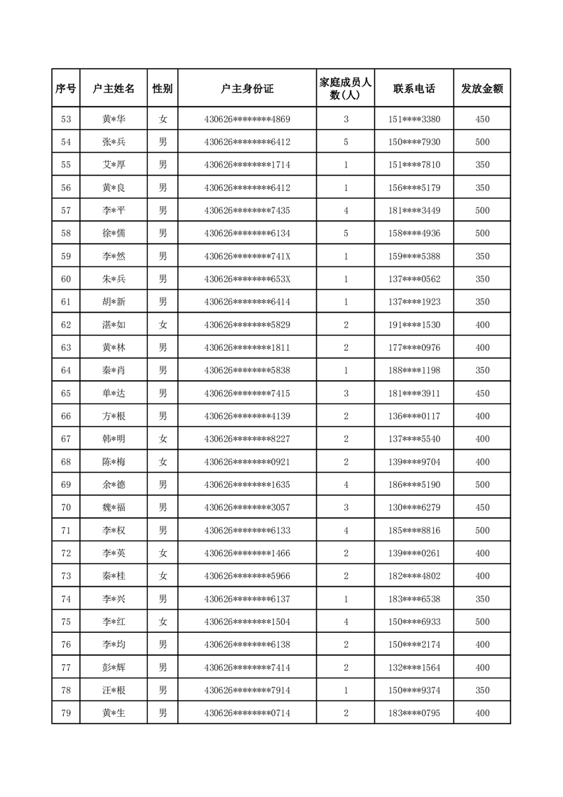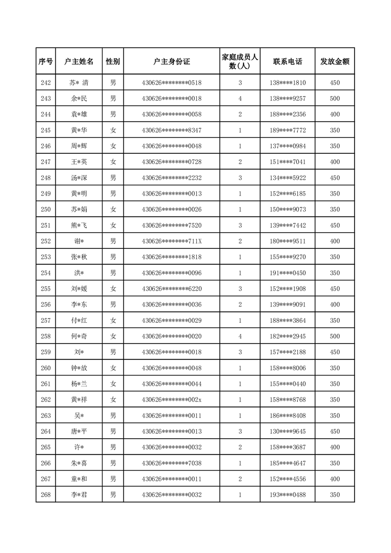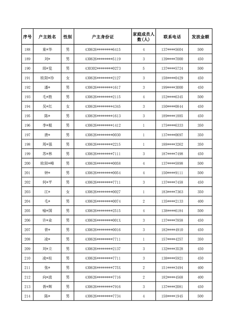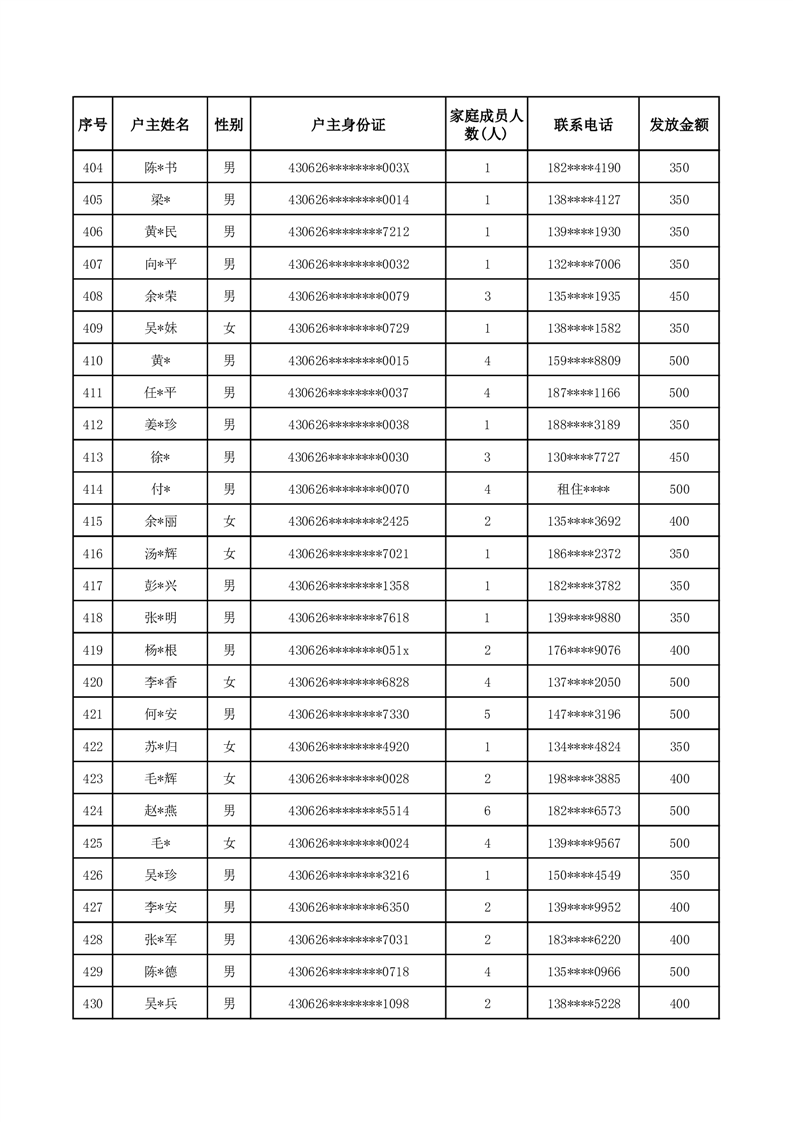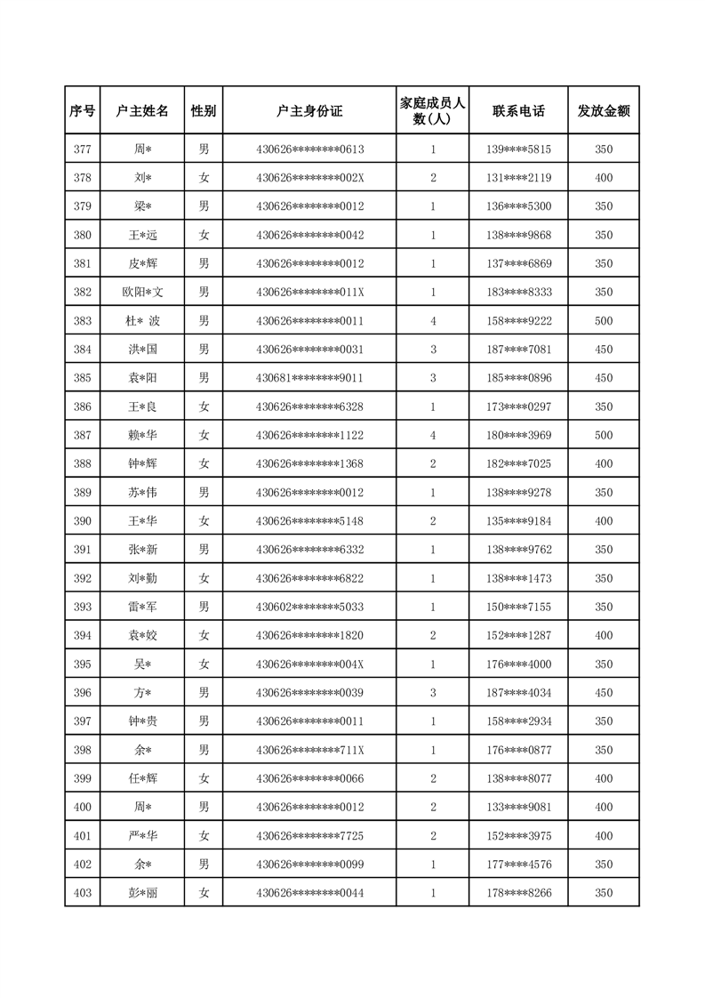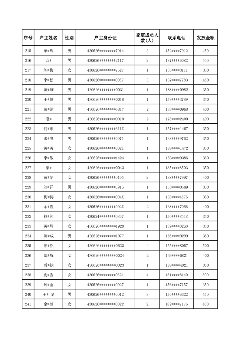 平江县一季度公共租赁住房补贴人员明细表