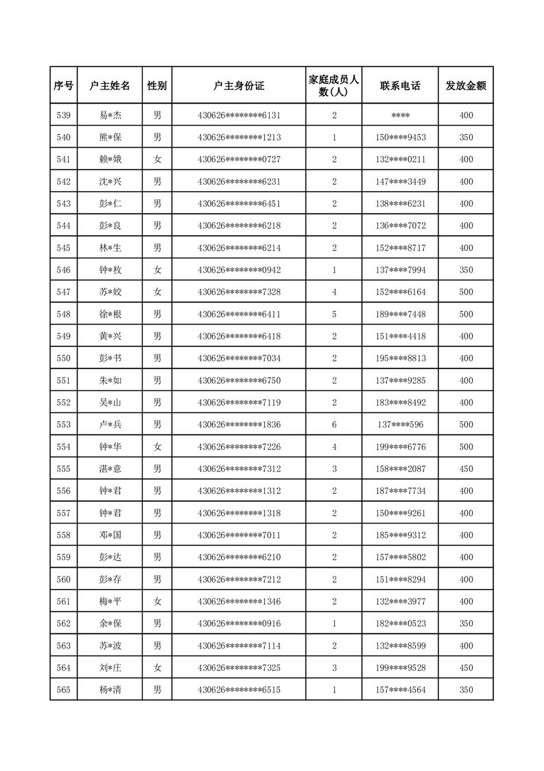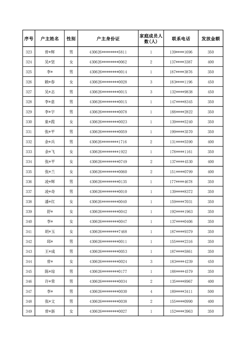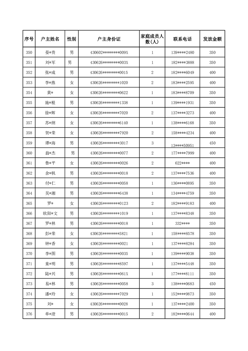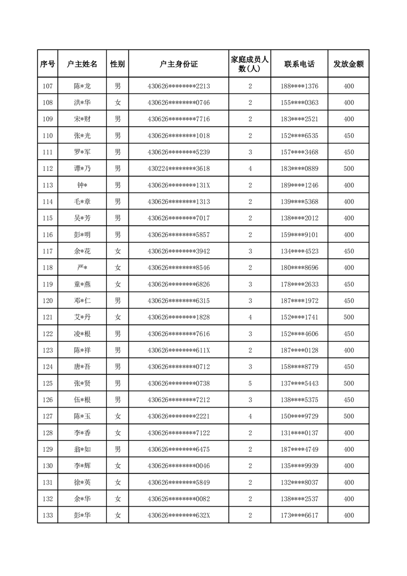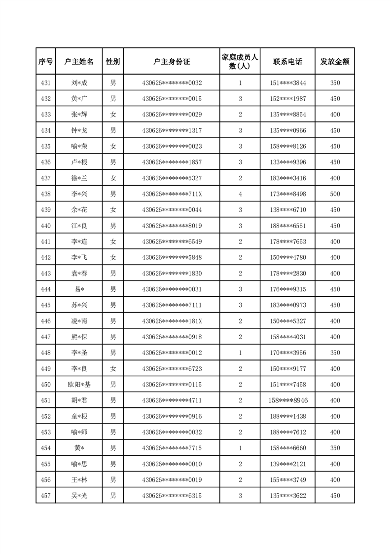平江县一季度公共租赁住房补贴人员明细表