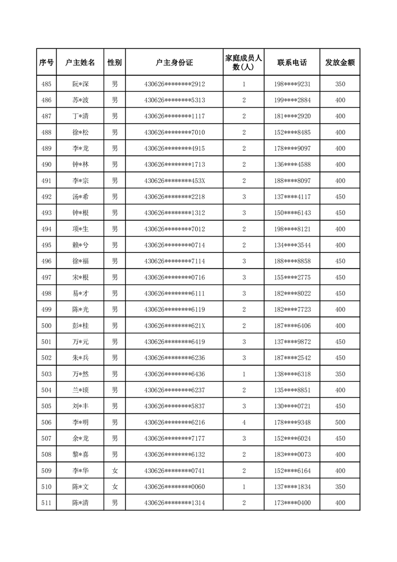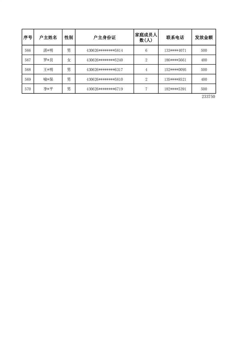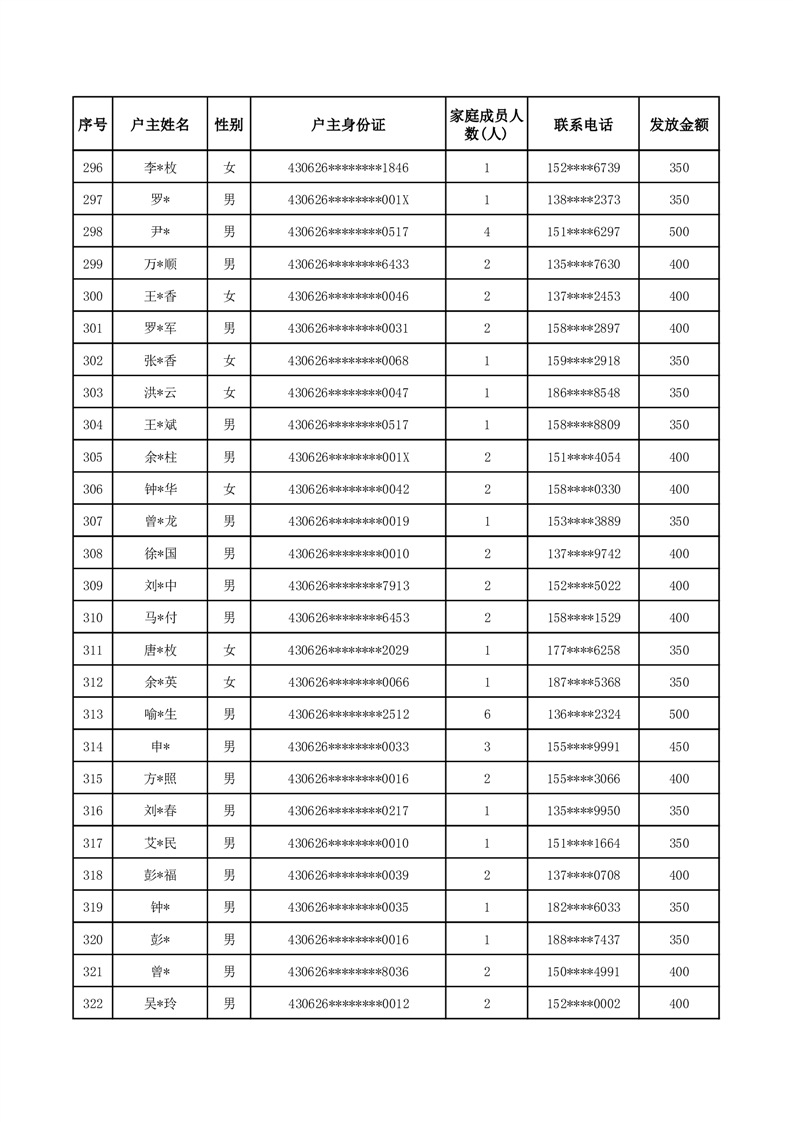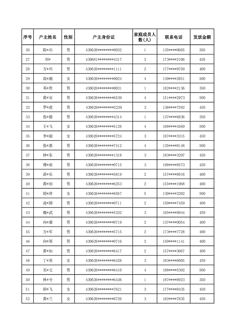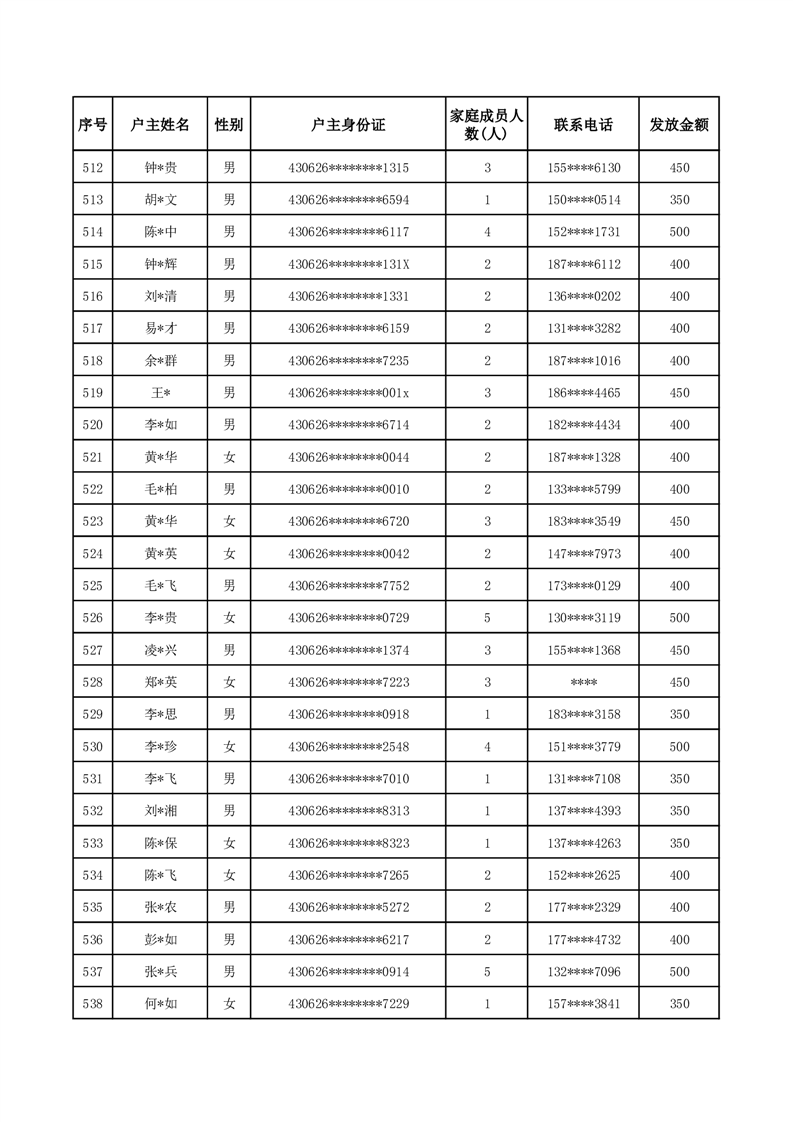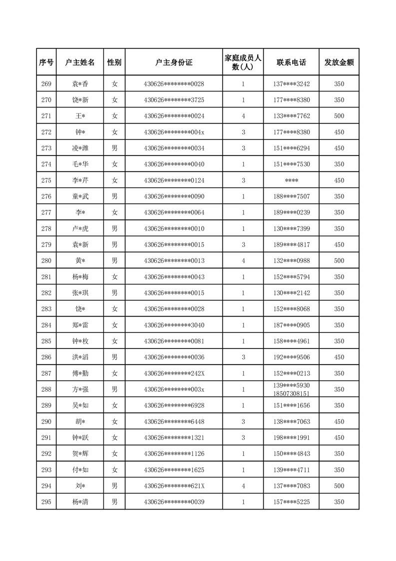 平江县一季度公共租赁住房补贴人员明细表