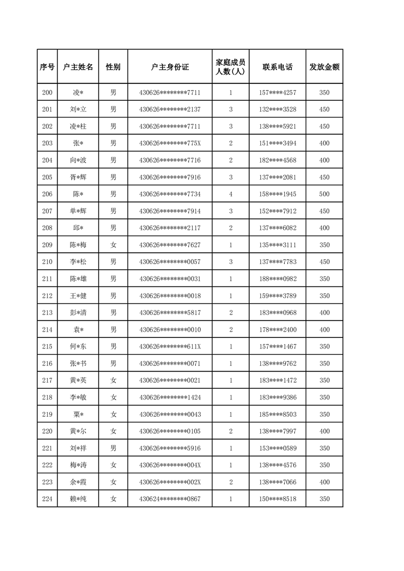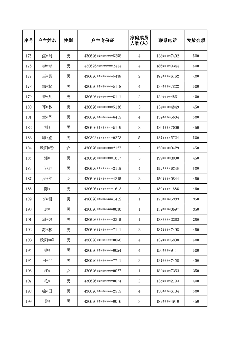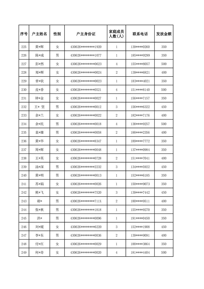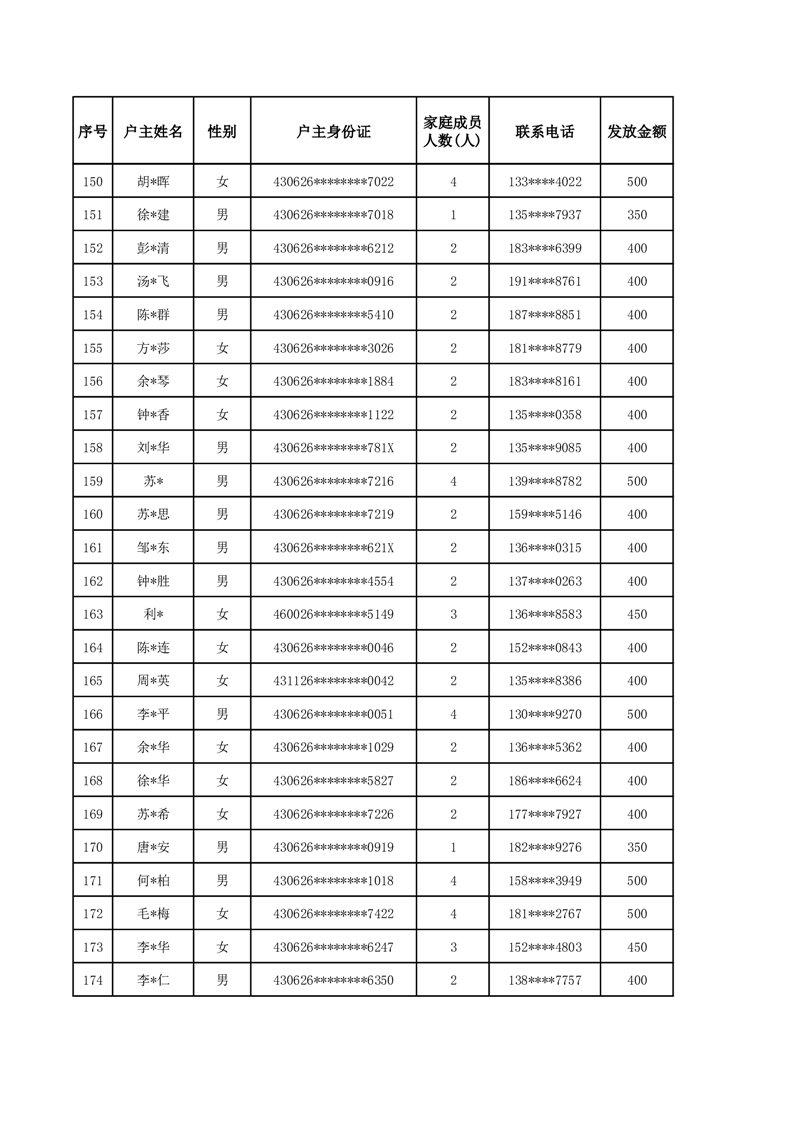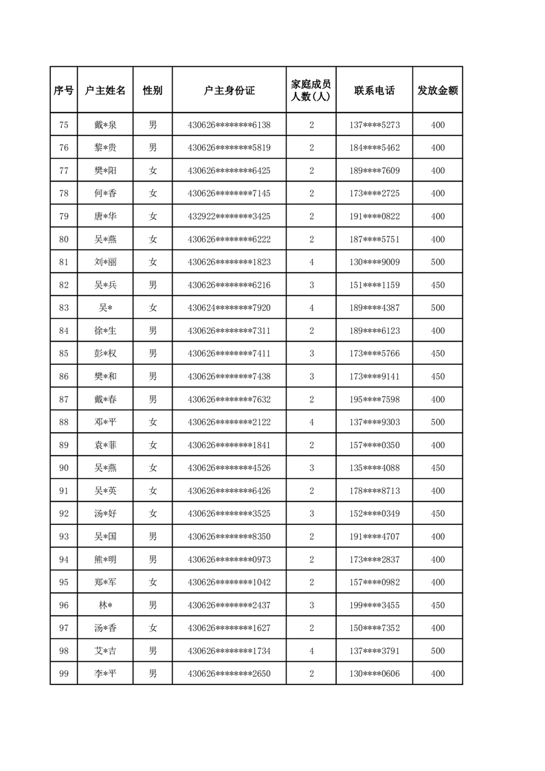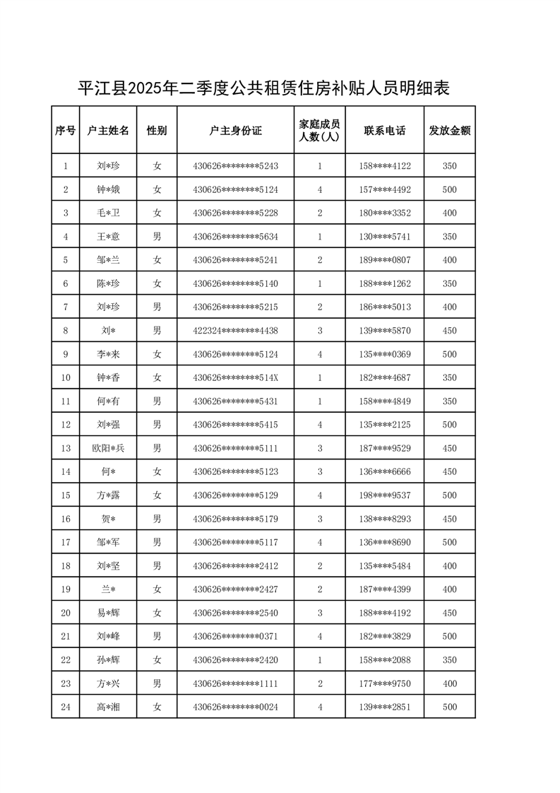 平江县2025年二季度公共租赁住房补贴人员明细表